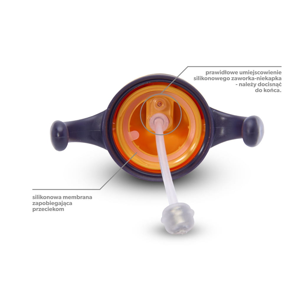 Ważne: W ustniku znajduje się dwukierunkowy silikonowy zaworek - niekapek, aby się z niego napić należy ścisnąć ustnik.