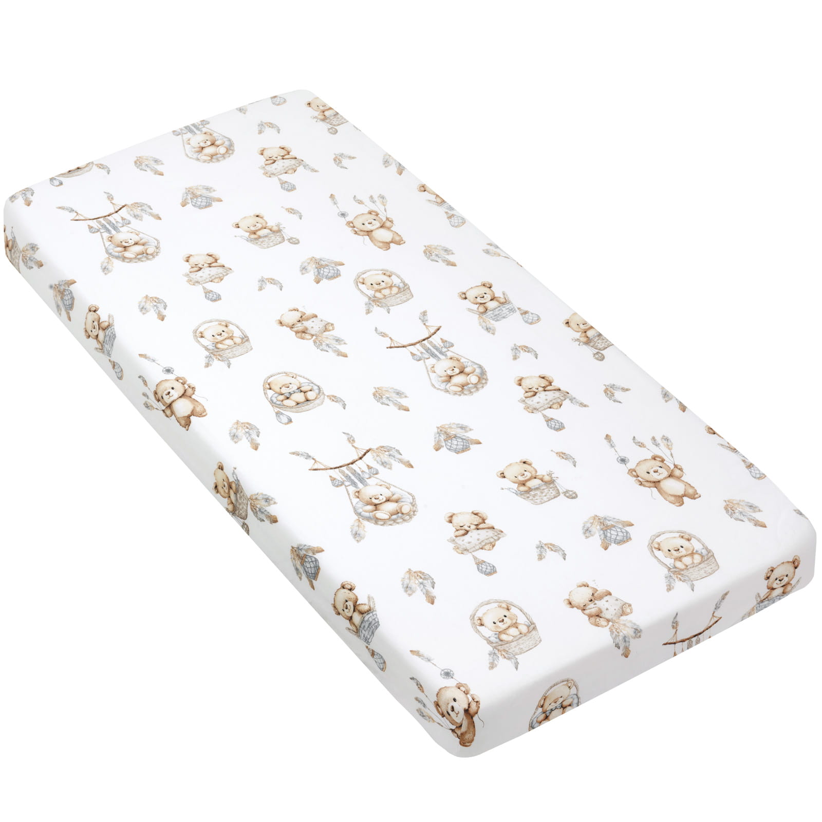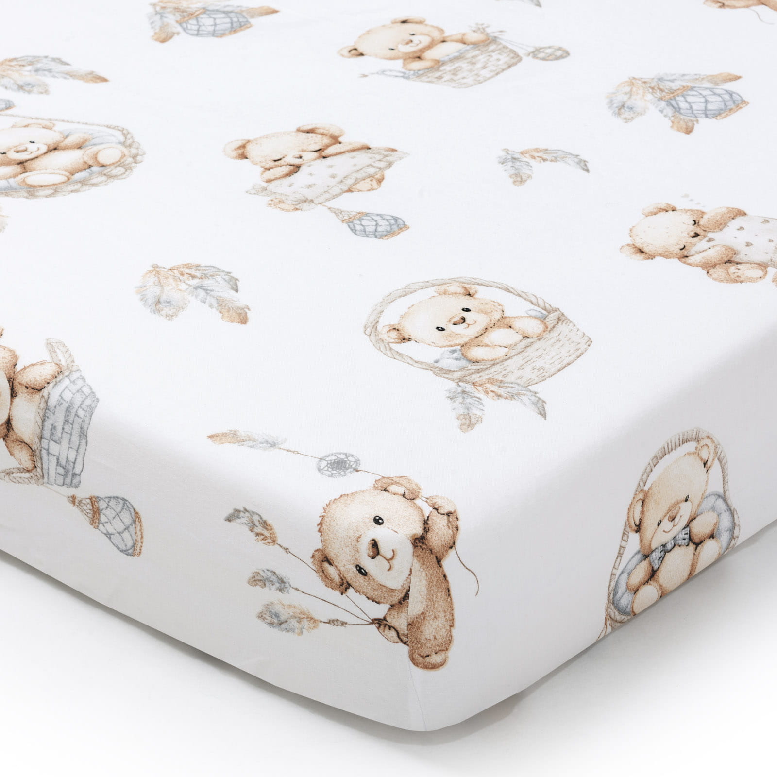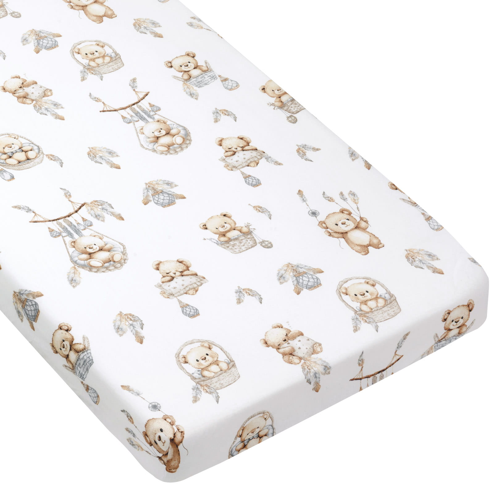 Bawełniane prześcieradło z gumką do łóżeczka 140x70cm - Boho Bears