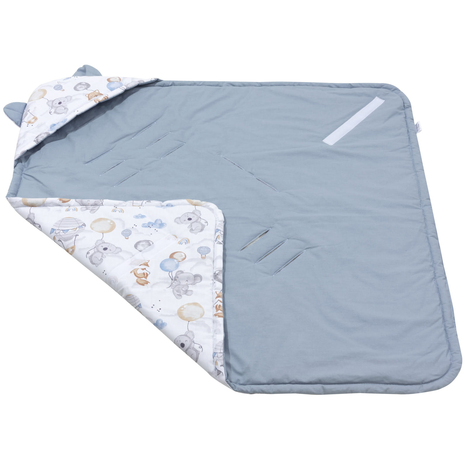 Bawełniany kocyk /otulacz z kapturem do fotelika niemowlęcego - Balloon Friends