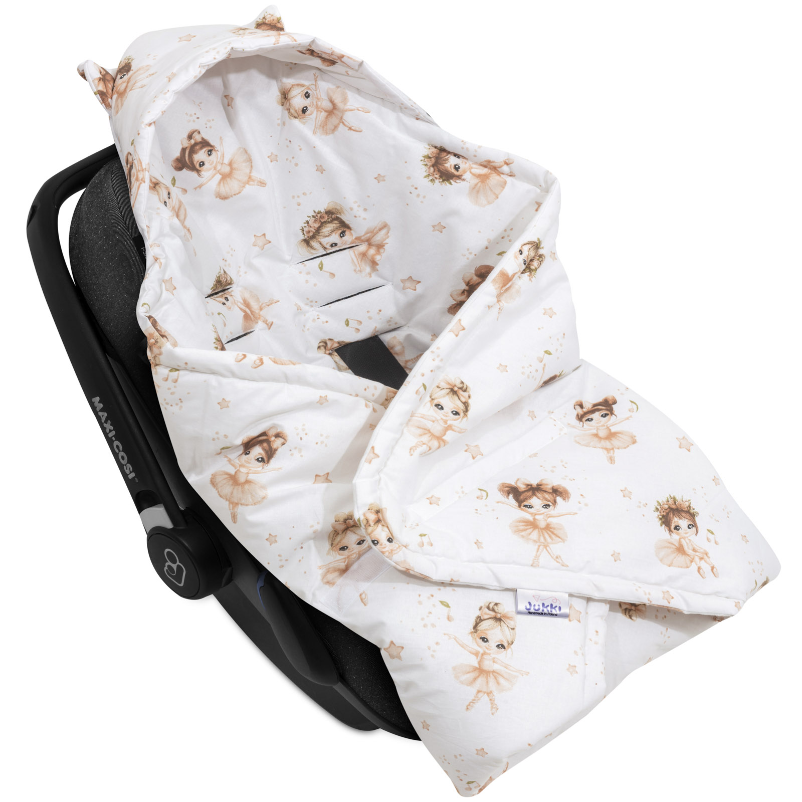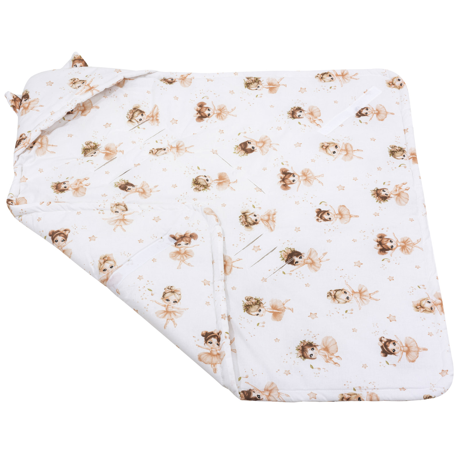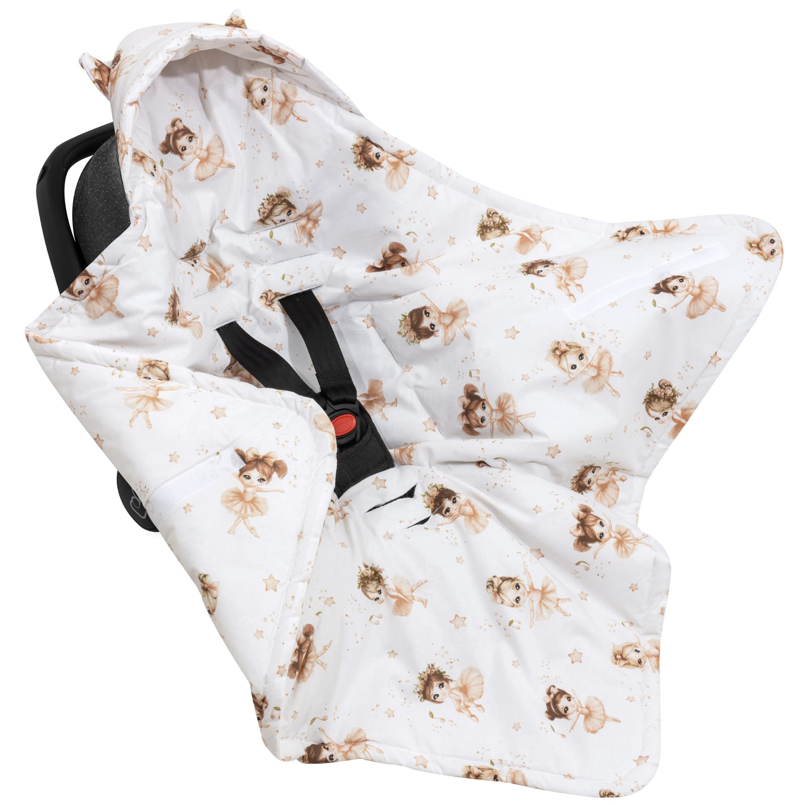 Bawełniany kocyk /otulacz z kapturem do fotelika niemowlęcego - Prima Ballerina