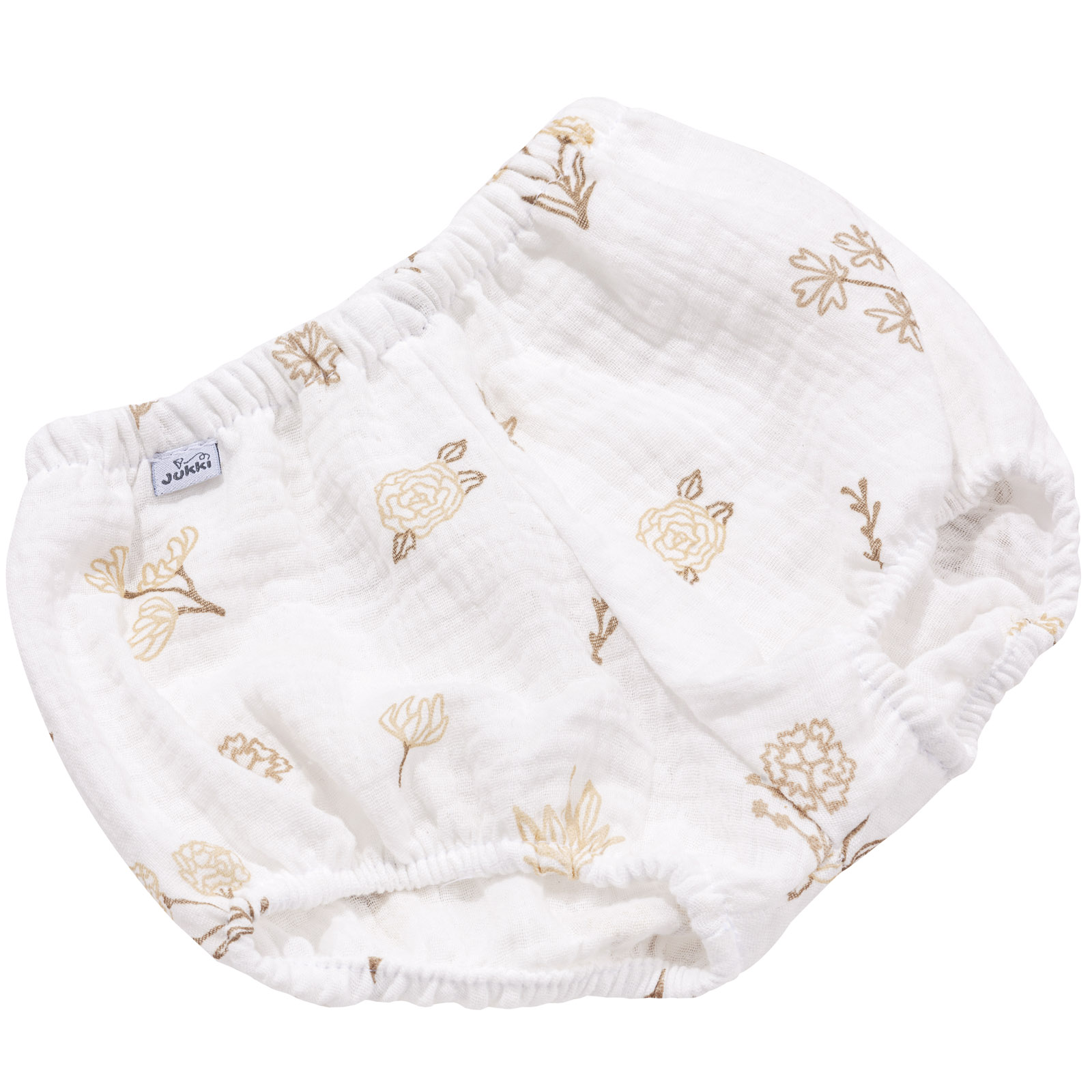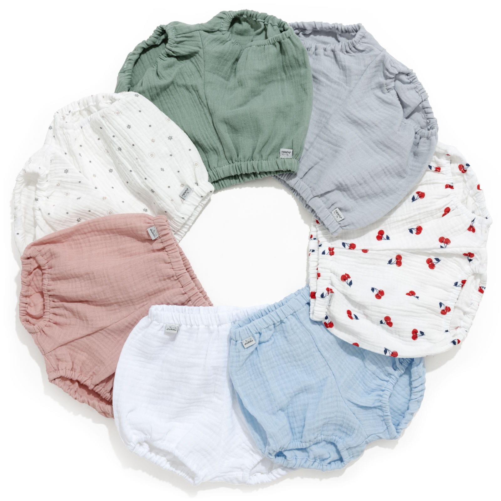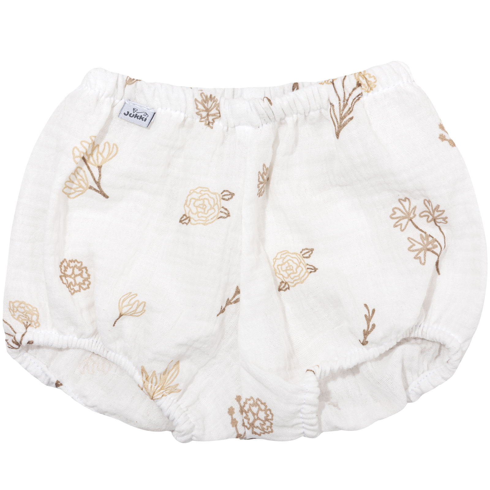 Bloomersy uszyte ze 100% bawełny muślinowej, która jest lekka, miękka i przewiewna, dzięki czemu dziecku nie grozi przegrzanie. Spodenki są delikatne i bezpieczne dla skóry.