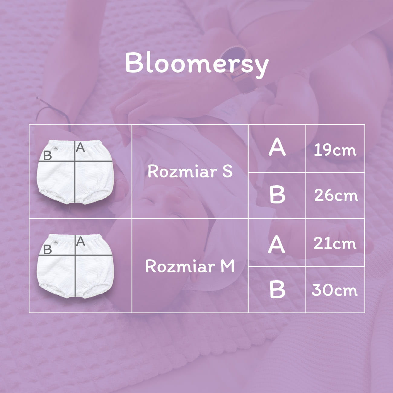 - Rozmiar S (62-68) : szerokość 26 cm, długość 19 cm