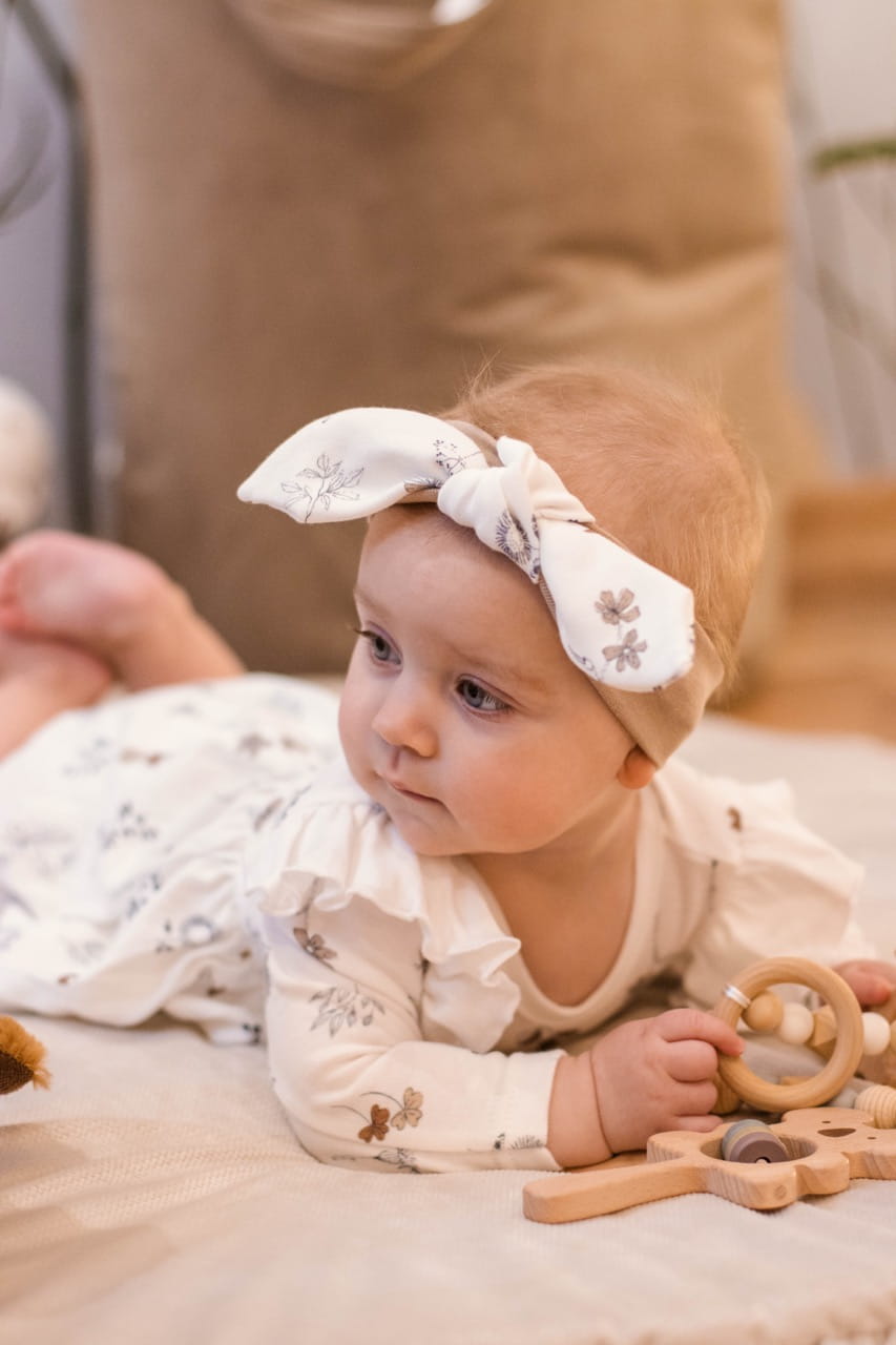 Bawełniana opaska z elastycznym, nieuciskającym ściągaczem oraz uroczą kokardką to doskonały wybór dla małej księżniczki.