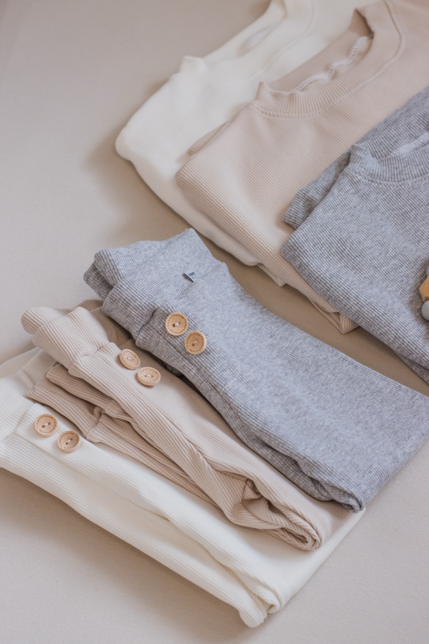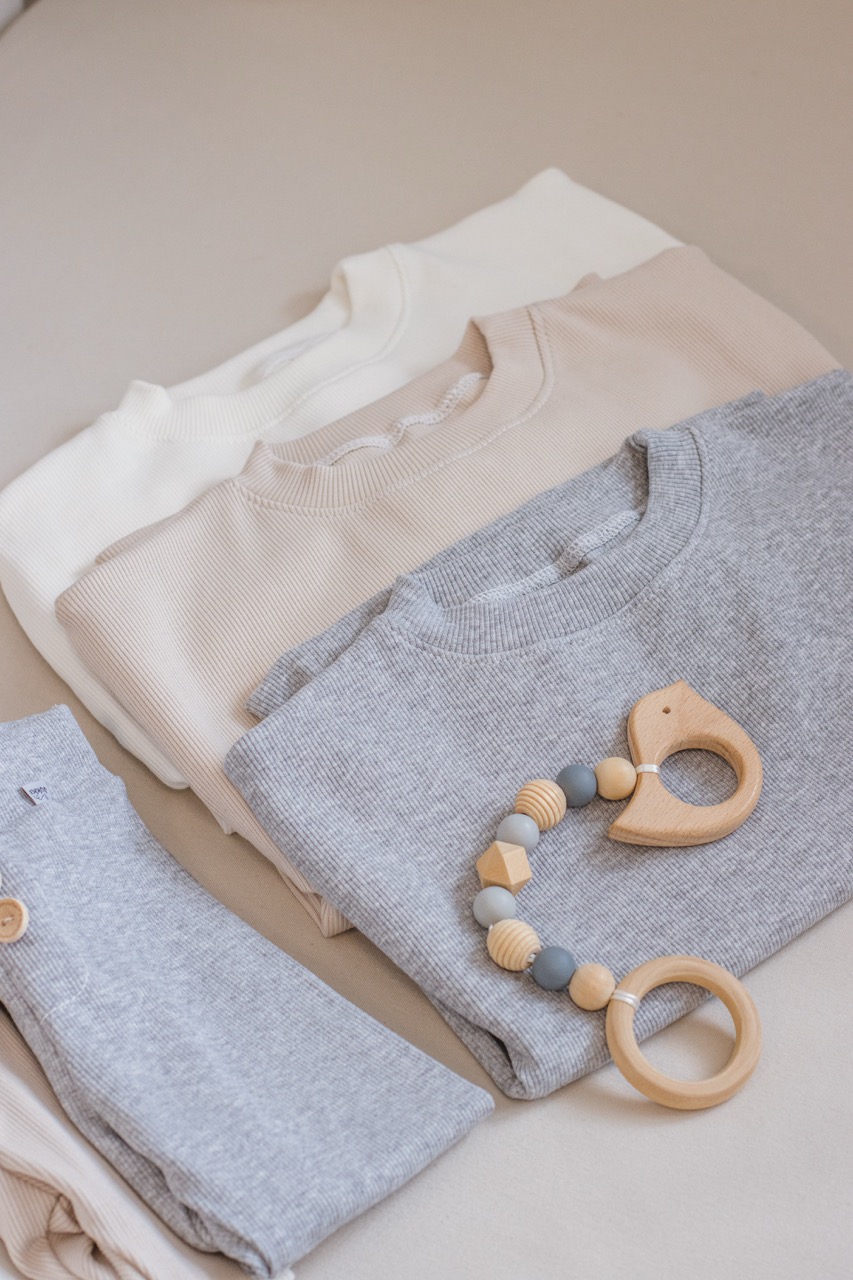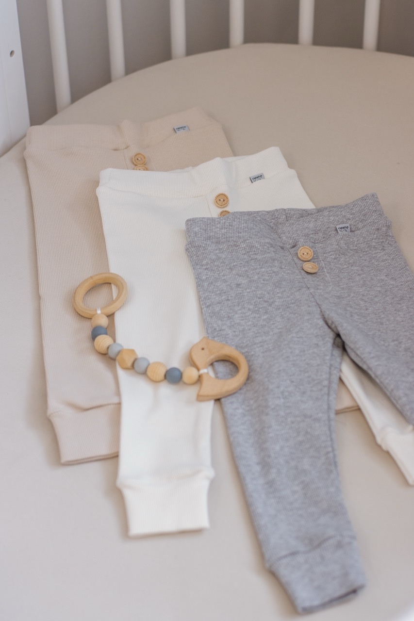 - Miękki, prążkowany materiał – delikatny i elastyczny, idealny dla wrażliwej skóry maluszka.