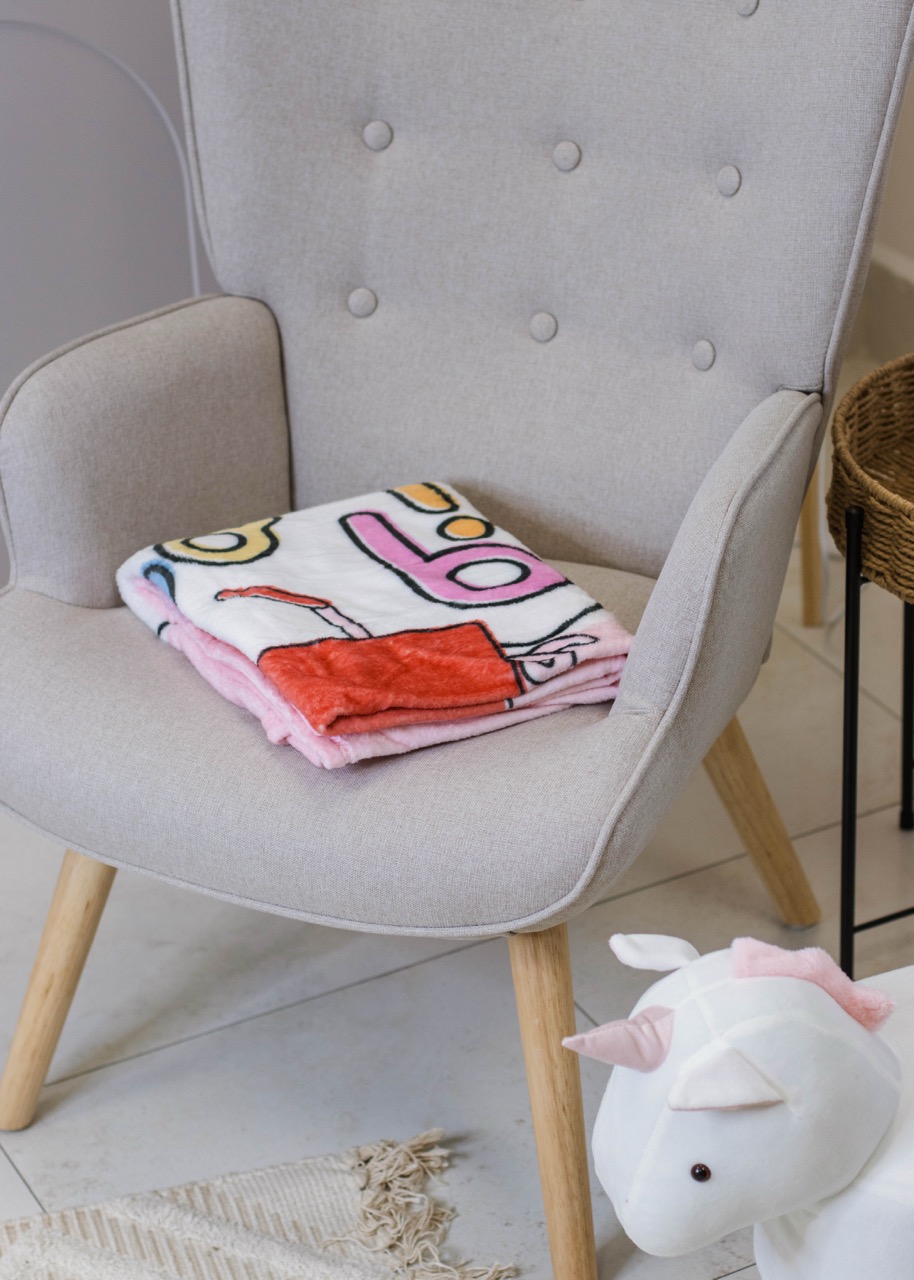 Koc wyróżnia się stonowaną, pastelową kolorystyką, zatem doskonale sprawdzi się dla najmłodszych dzieci oraz przedszkolaków.