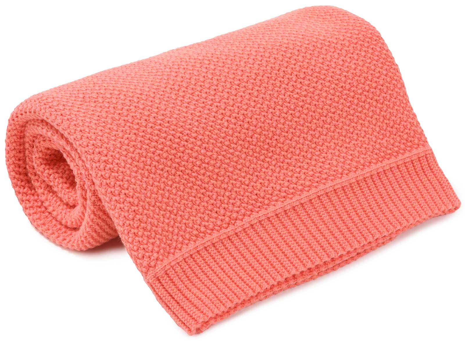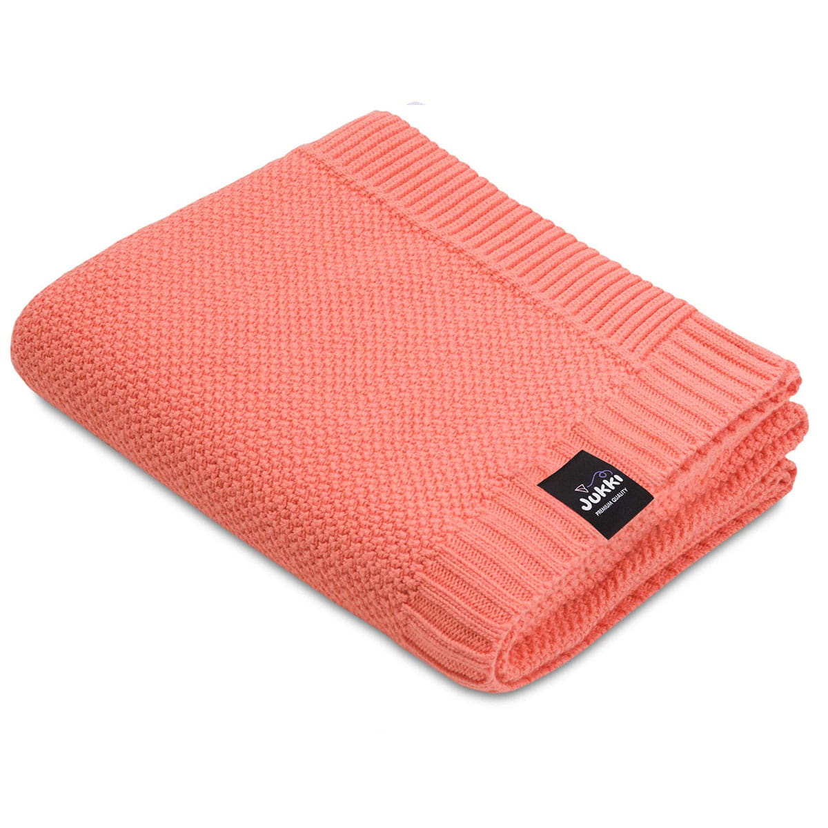 Kocyk dziany BAWEŁNA 80 x 100 cm - Koralowy