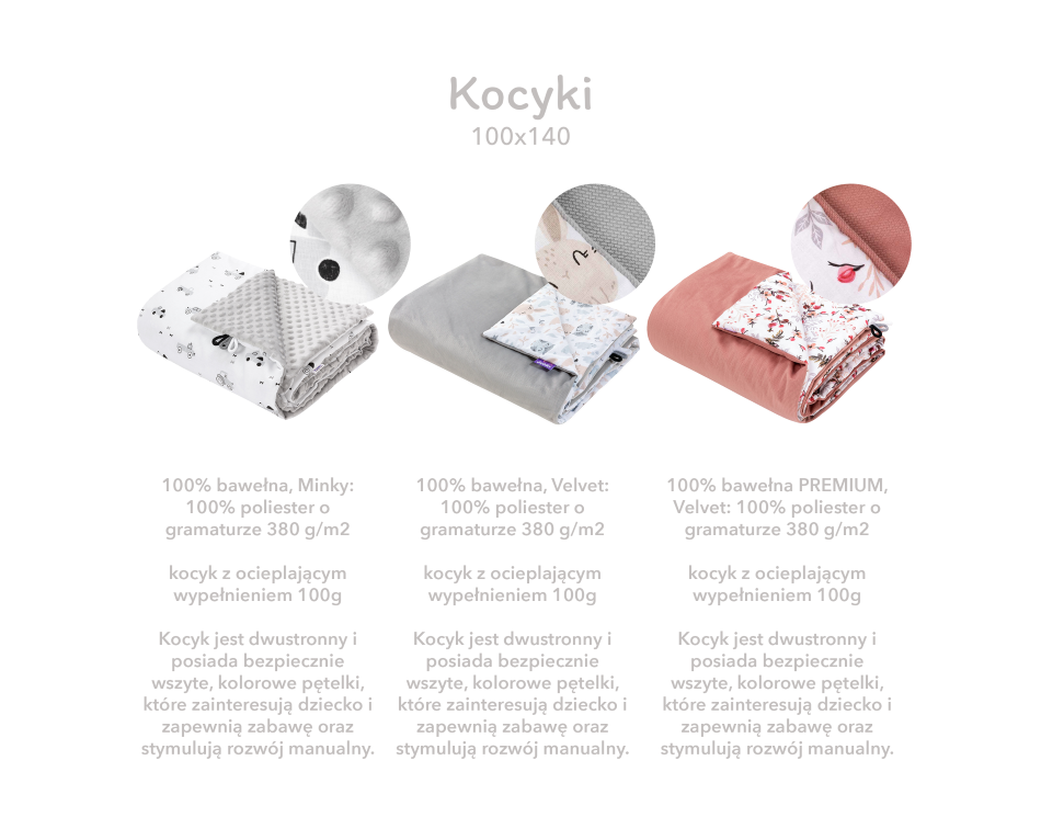 - wymiary kocyka: 100 x 140 cm,