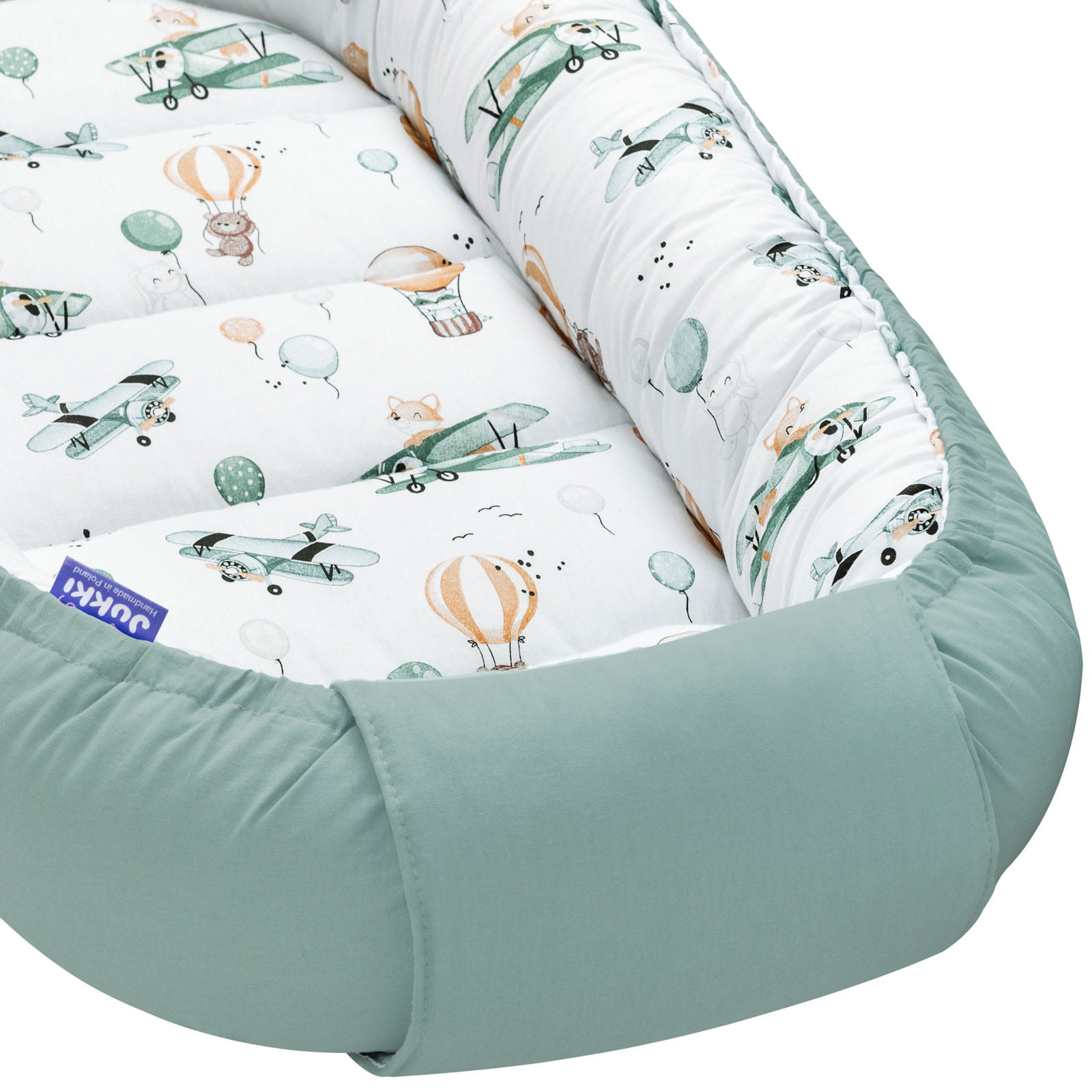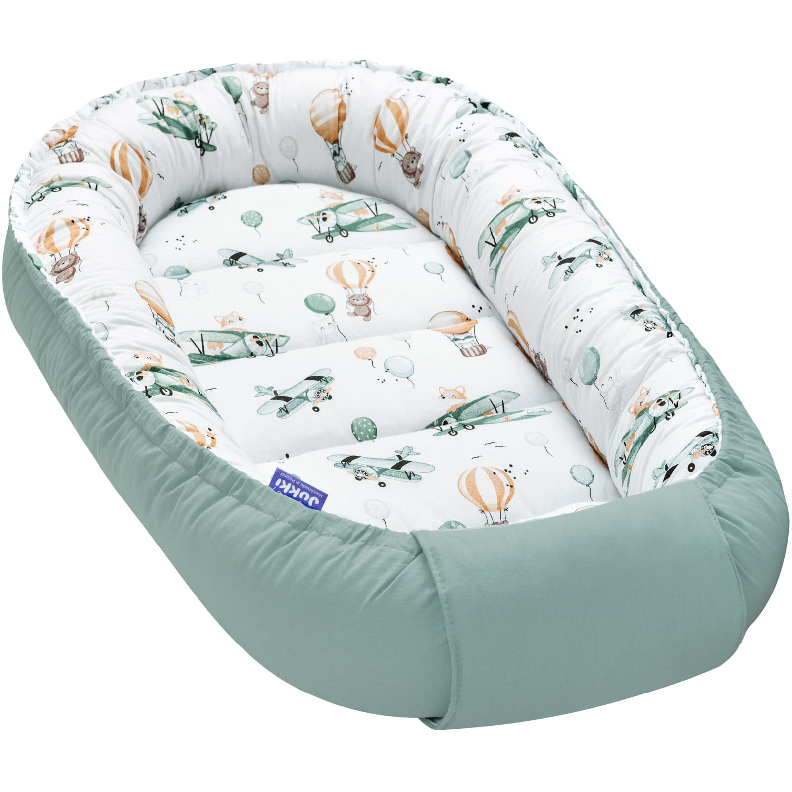 Kokon można skompletować z innymi produktami Jukki – mięciutkimi kocykami Minky, dekoracyjnymi poduszkami, koszami na zabawki – tak, by przestrzeń twojego malucha była harmonijna i tworzyła spójną całość.
