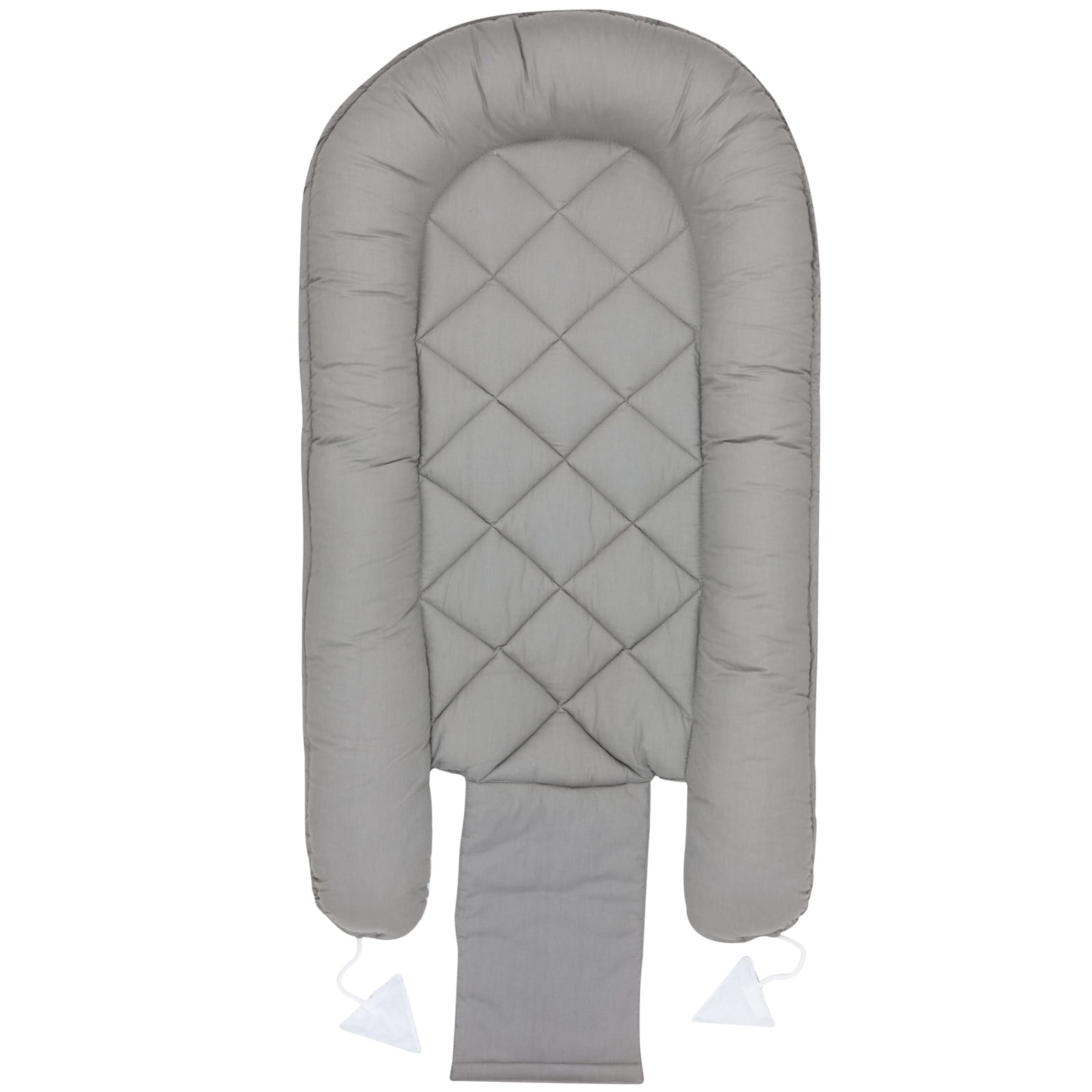 Gniazdko doskonale służy także starszym maluszkom stając się idealną przestrzenią do zabawy, leżenia na brzuszku i pierwszych ćwiczeń – podnoszenia główki czy leżących w jego zasięgu grzechotek. Rozwiązanie sznurków pozwala na używanie kokonu jako przewijaka.