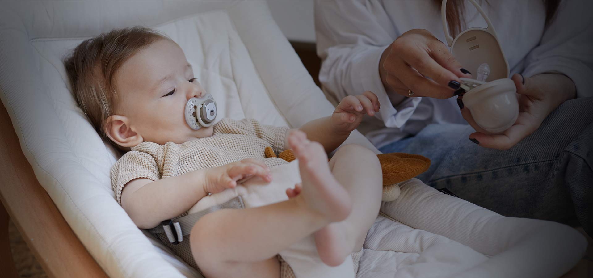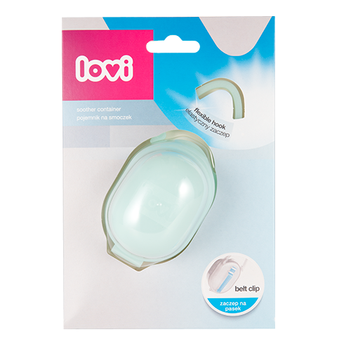 Stworzony przez markę LOVI pojemnik na smoczek Mint został wyposażony w dwa praktyczne uchwyty, dzięki którym można w zależności od sytuacji łatwo go zamocować do wózka, fotelika samochodowego a nawet paska do spodni rodzica.