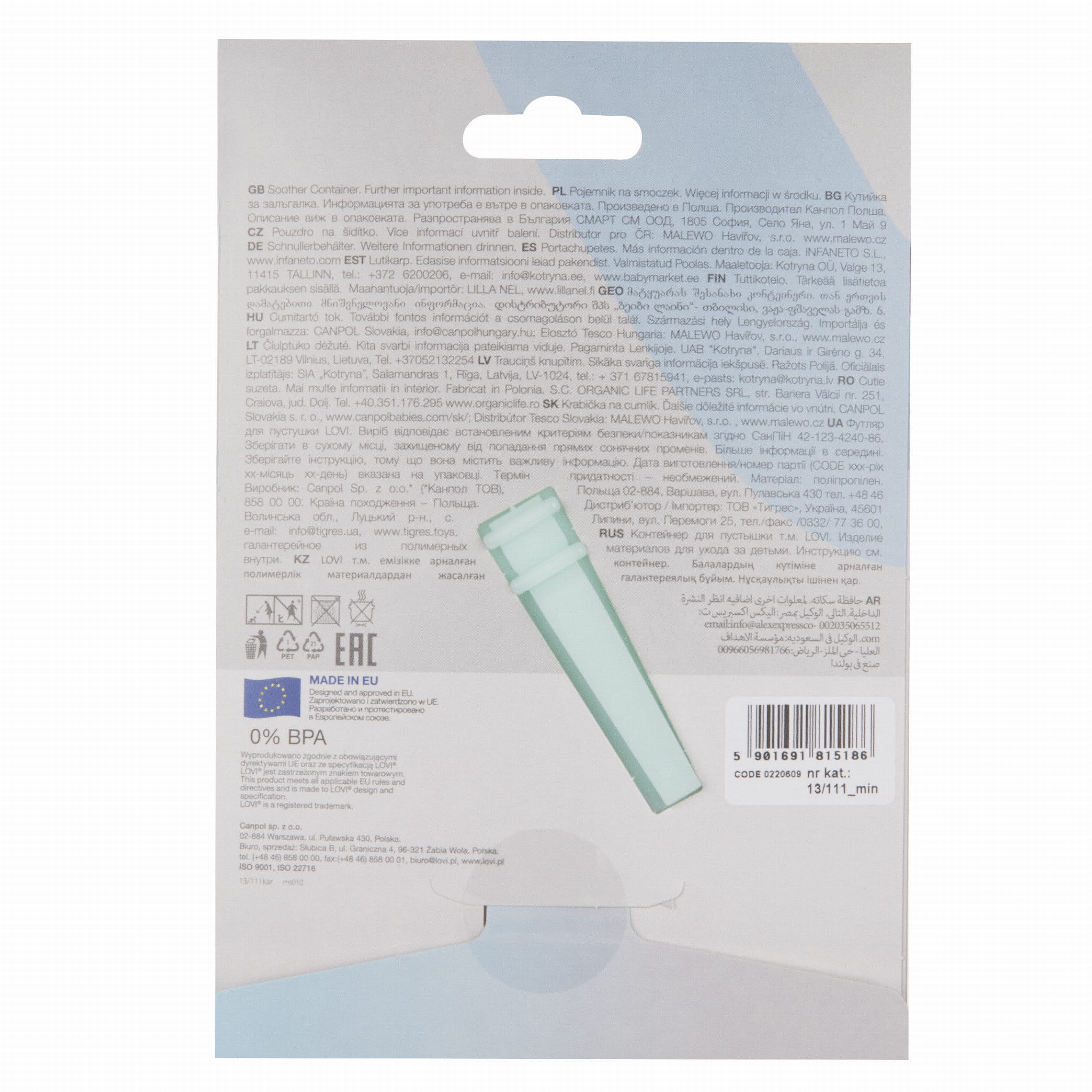 Pojemnik na smoczek LOVI Mint został wykonany z bezpiecznego plastiku. Jest uniwersalny - pasuje do większości smoczków.