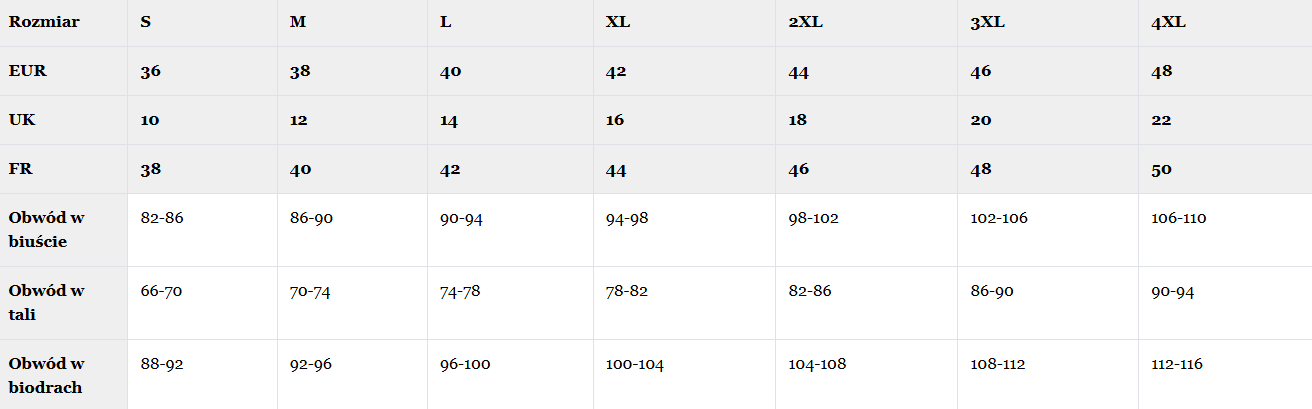 Skład: 70% wiskoza, 10% elastan, 10% bawełna, 10% poliamid