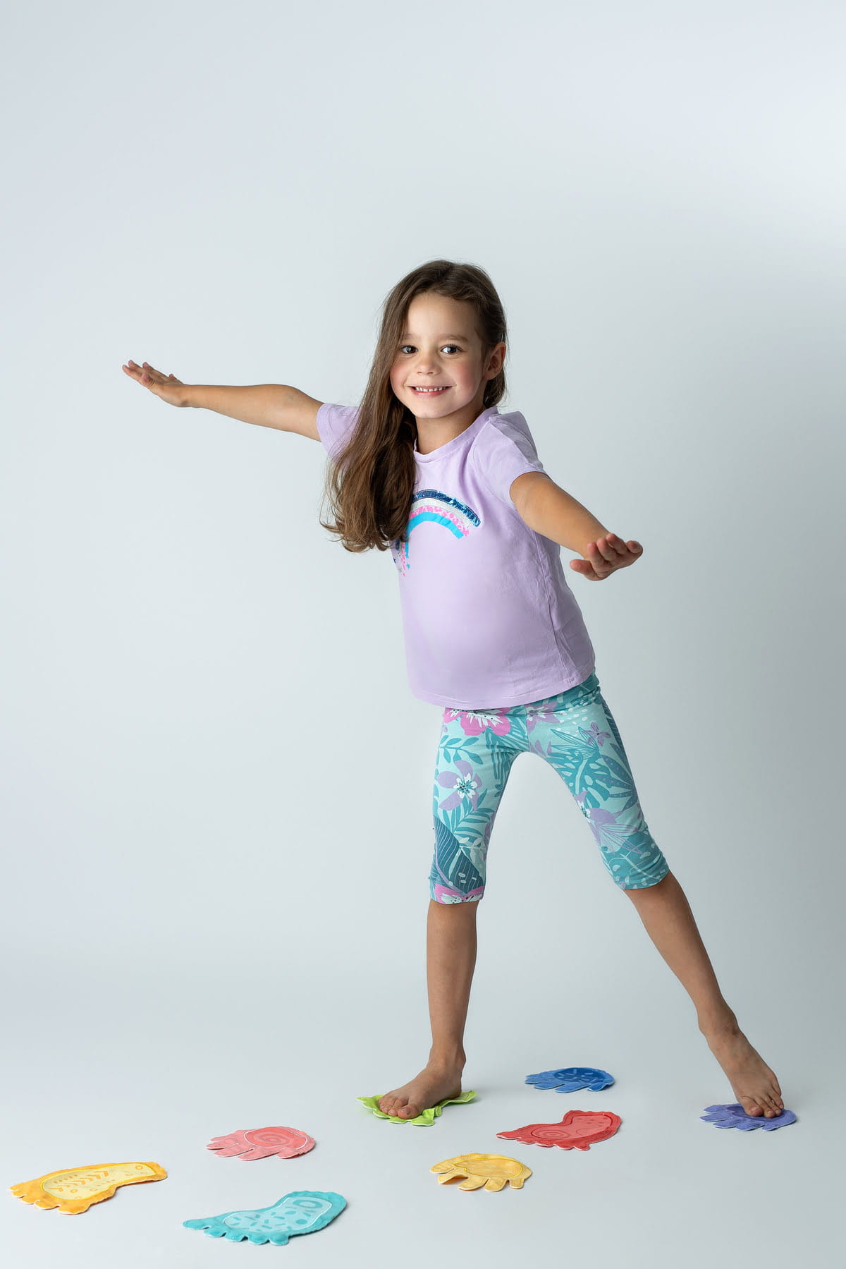 - ścieżka sensoryczna, rozwijając motorykę dużą, zmysł równowagi i koordynację ruchową, jednocześnie stymulując receptory w stopach.