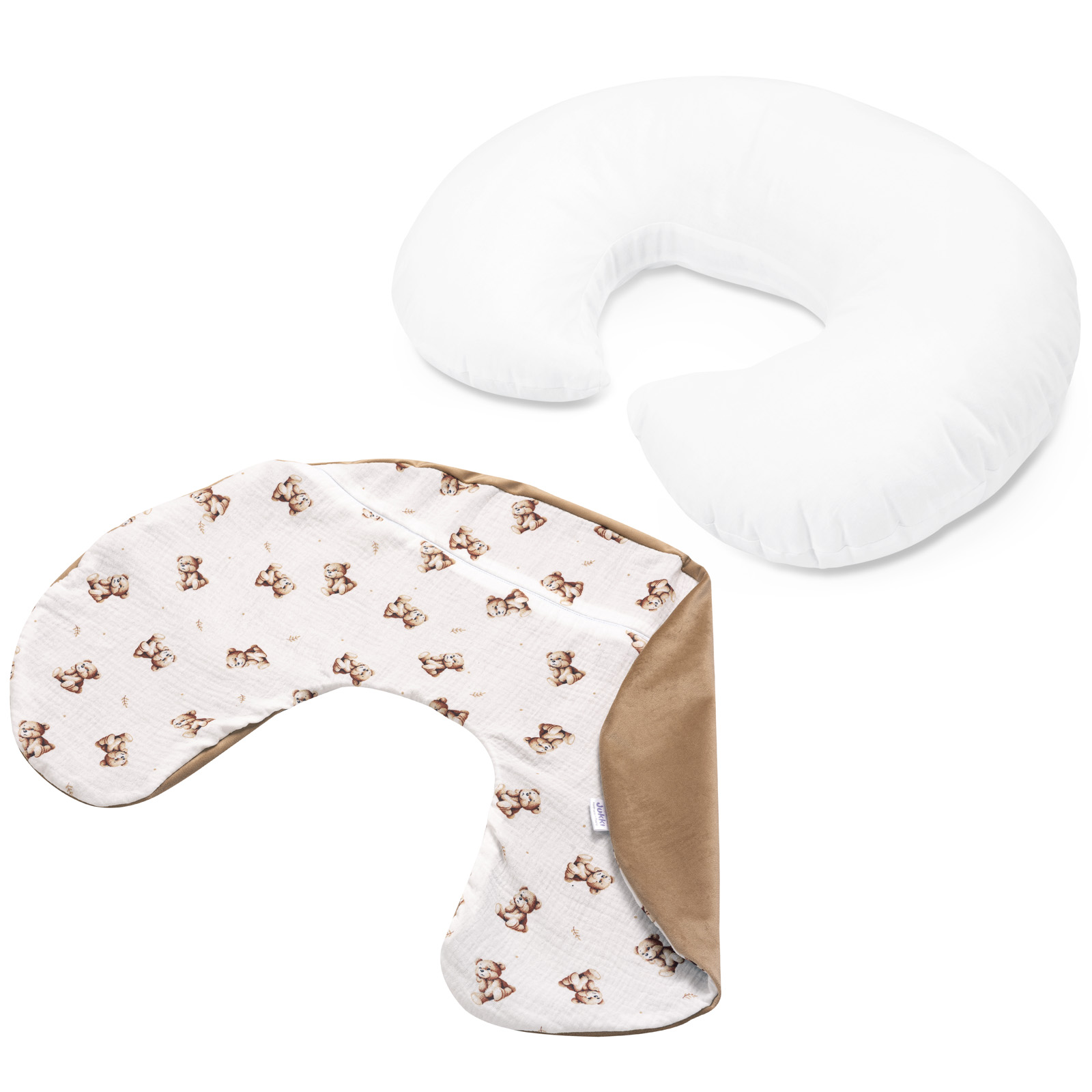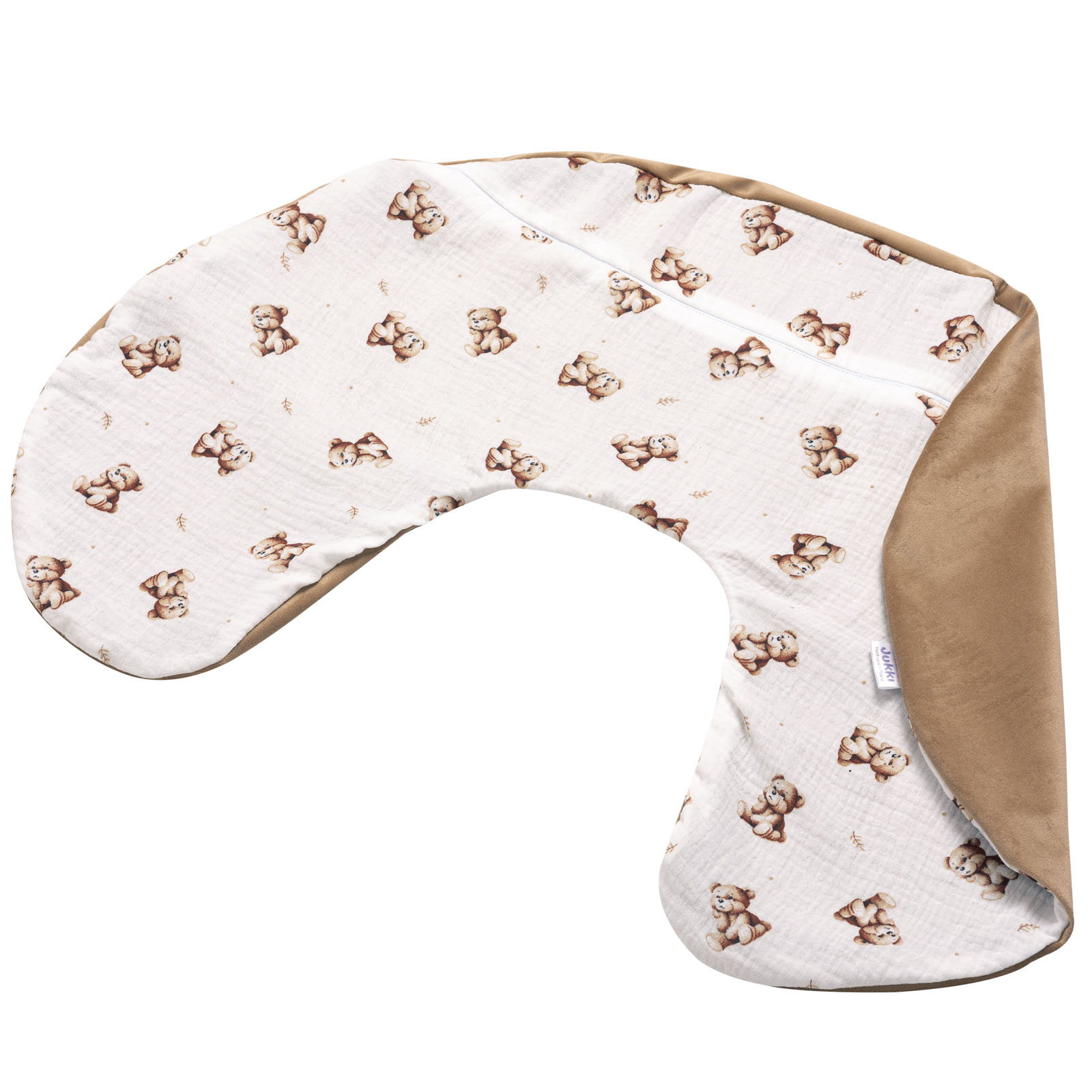 - Pokrowiec zewnętrzny: muślin 100% bawełna, velvet 100% poliester, zapinany na suwak.
