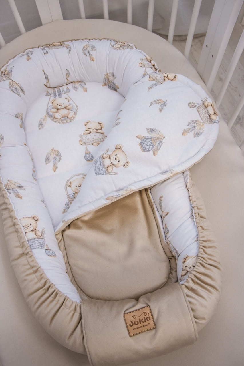 Materac do kokonu Comfort -Boho Bears i Cappuccino Soft Velvet