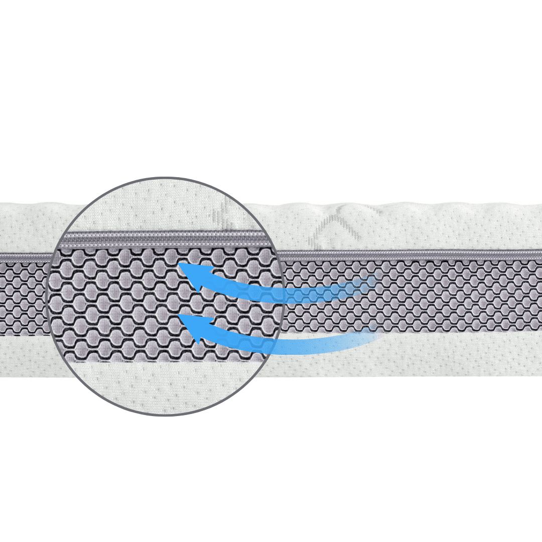 Skuteczny system wentylacji STANDARD AIRFLOW (siateczkowa dzianina dystansowa 3D w bocznych panelach pokrowca) zapewnia komfortowe i higieniczne warunki snu.