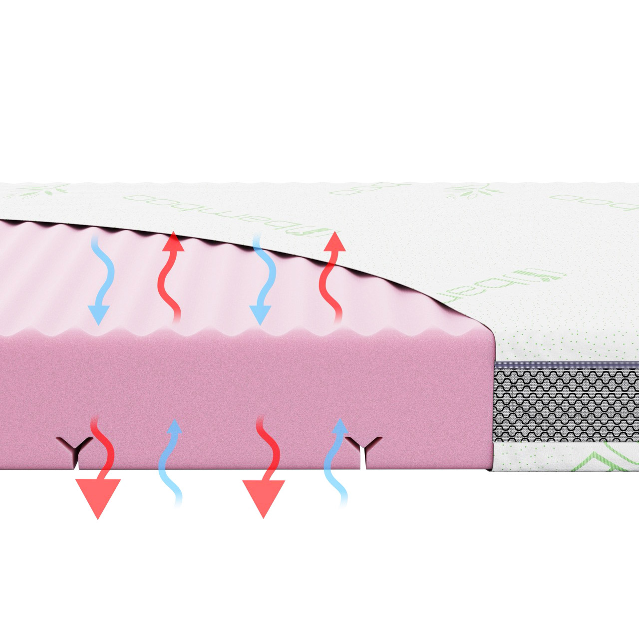 - system równomiernych kanalików wentylacyjnych w kształcie litery Y w piance materaca