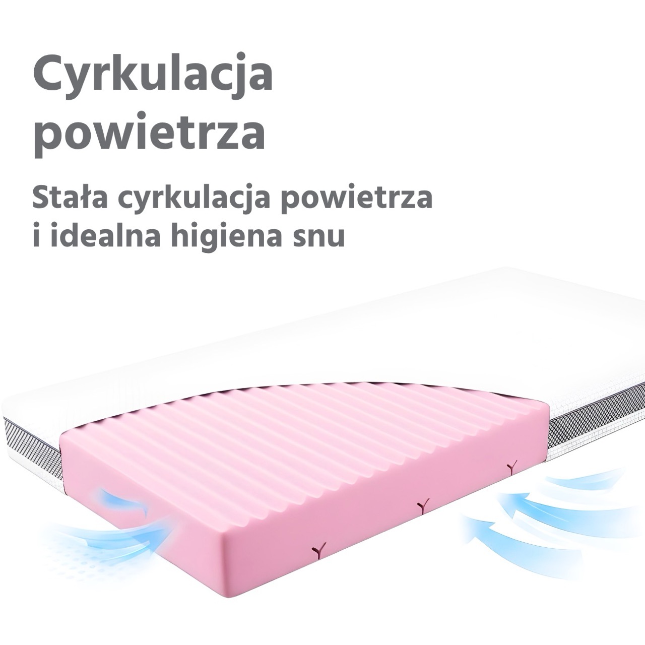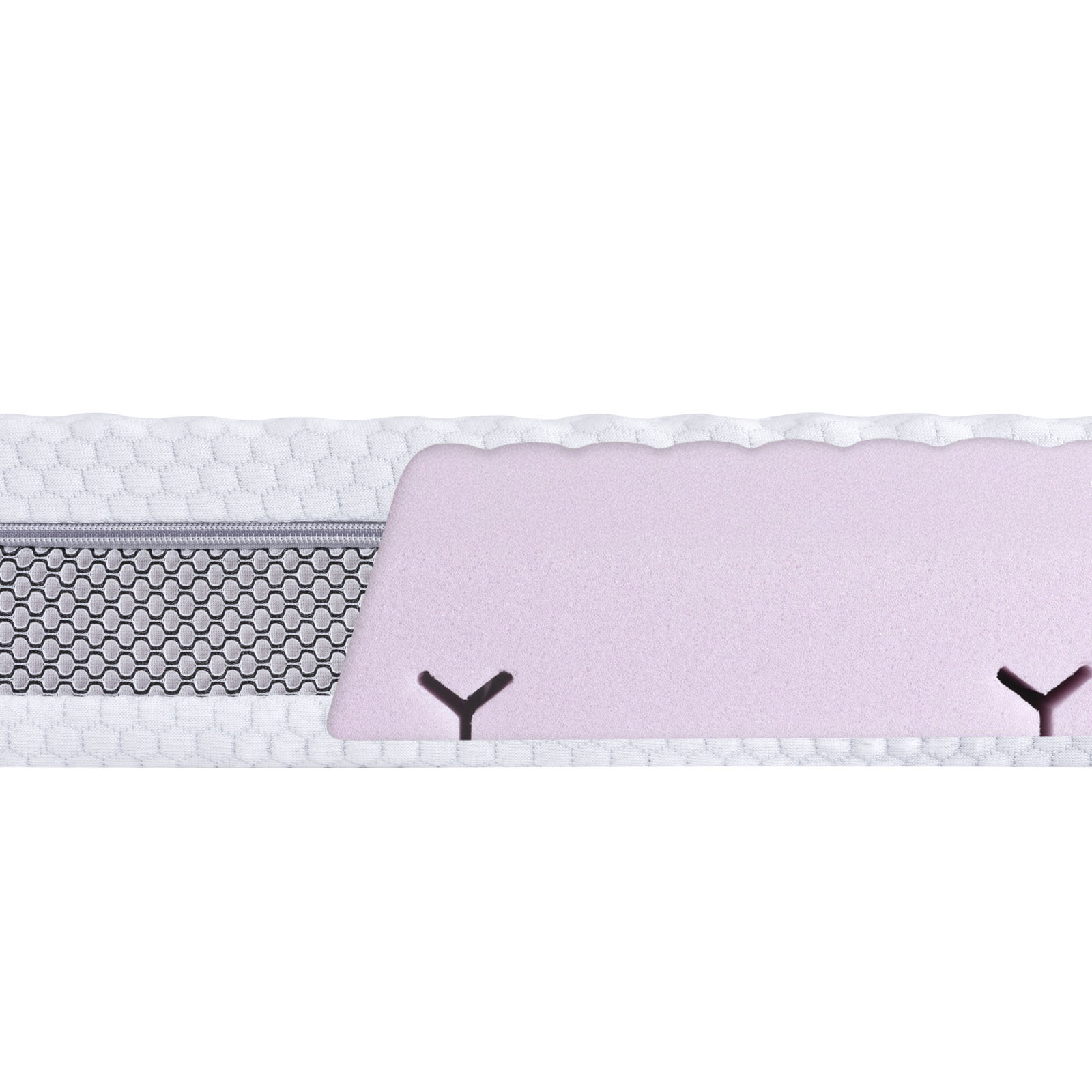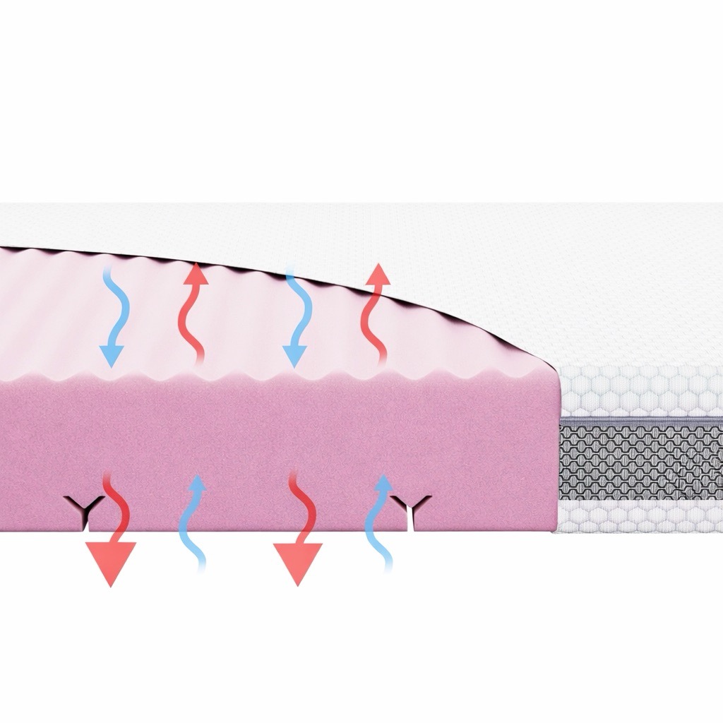 - system równomiernych kanalików wentylacyjnych w kształcie litery Y w piance materaca