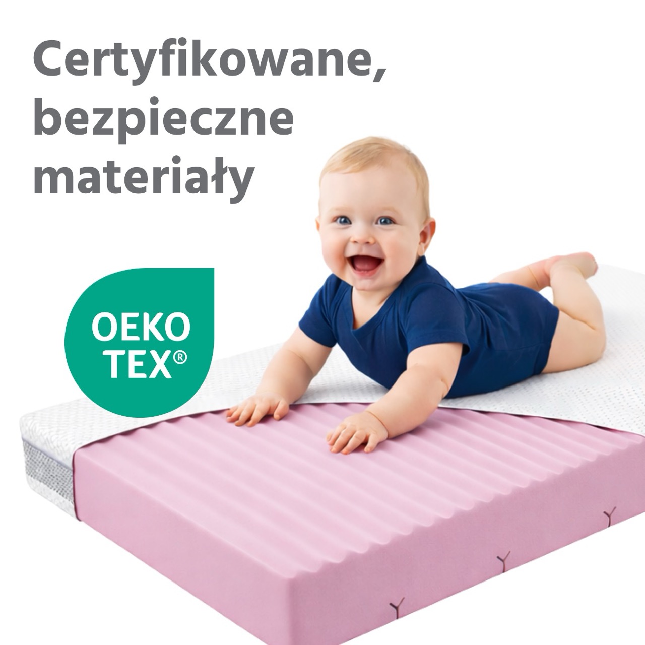 Wszystkie komponenty materaca posiadają certyfikat Oeko-Tex Standard 100, co oznacza, że są wolne od substancji szkodliwych dla zdrowia dziecka.