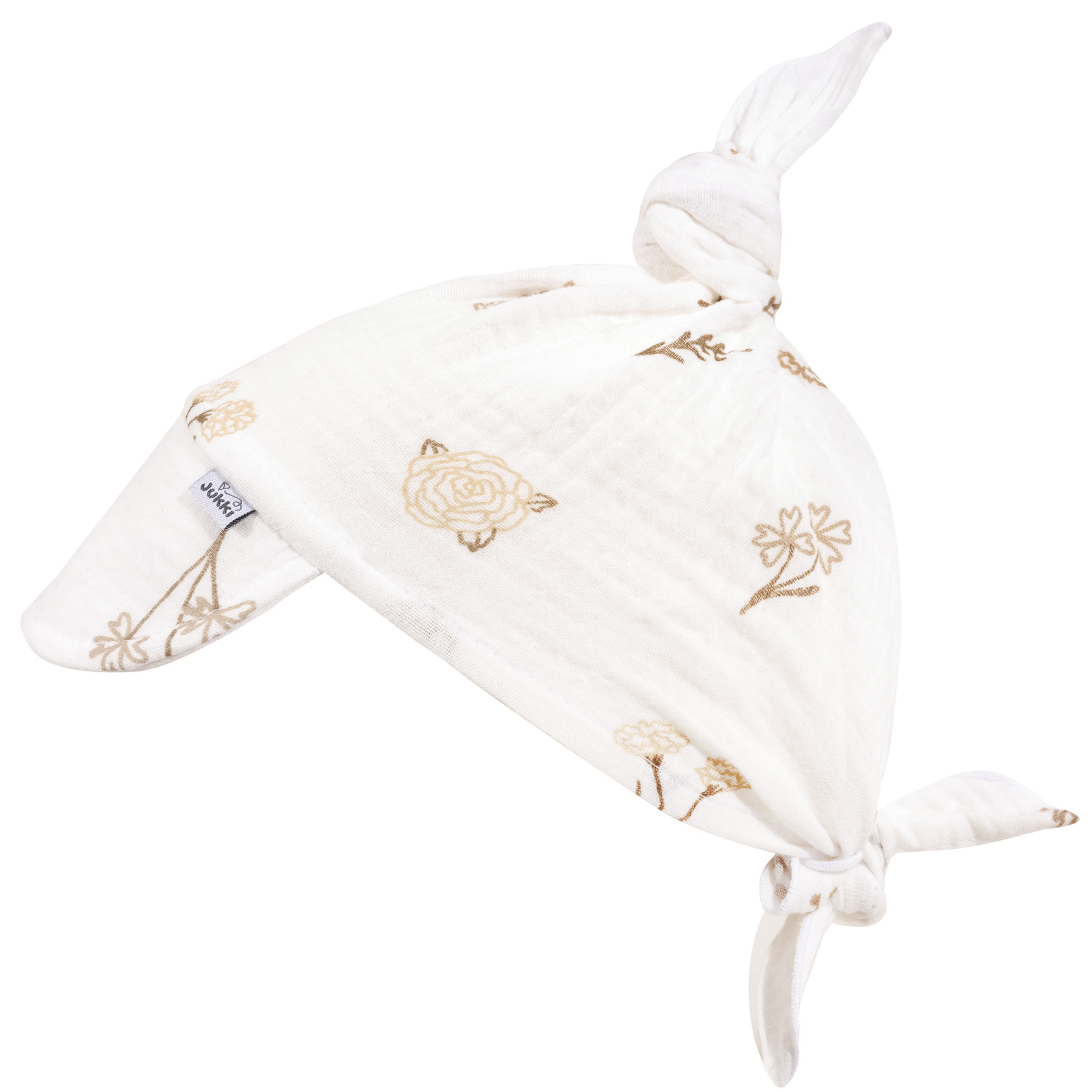 Chustka z daszkiem wykonana jest z muślinu, czyli naturalnej bawełnianej tkaniny bezpiecznej dla skóry dziecka. Delikatna, przewiewna i miękka zapewni komfort i ochroni główkę dziecka przed słońcem i wiatrem. Delikatnie usztywniony daszek osłoni twarz i oczy przed promieniowaniem.