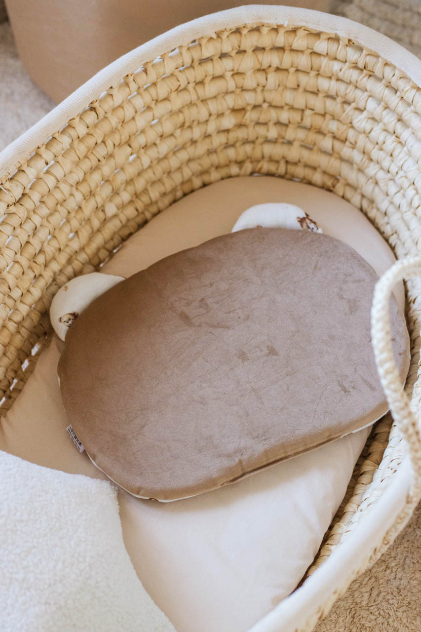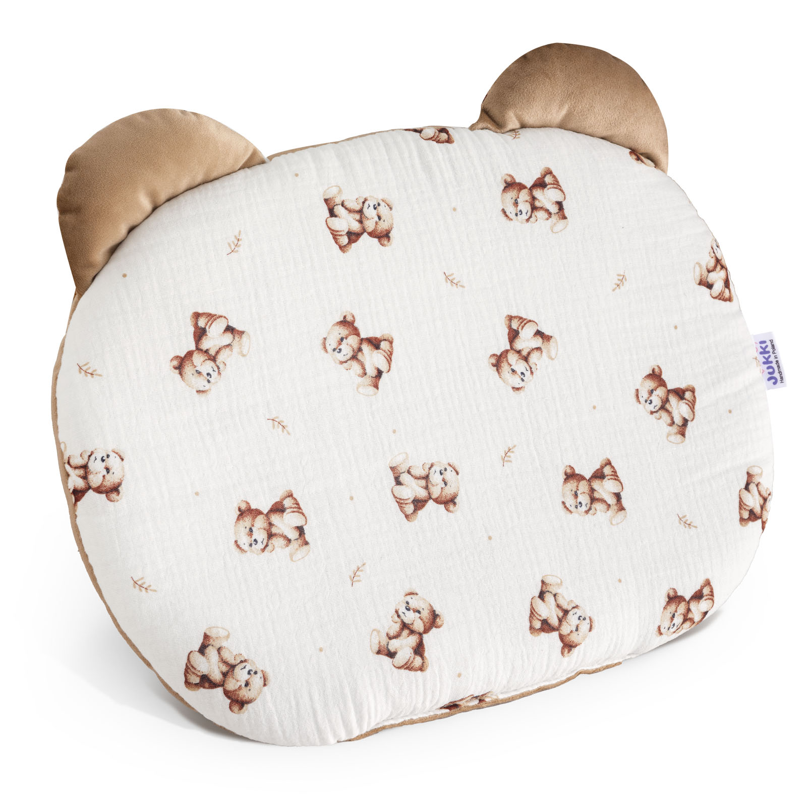 Poduszka płaska MIŚ do wózka lub łóżeczka w uroczym kształcie główki misia z uszkami. Świetnie sprawdzi się w codziennym odpoczynku oraz na rodzinnych spacerach. Można jej używać już od 1 dnia życia.