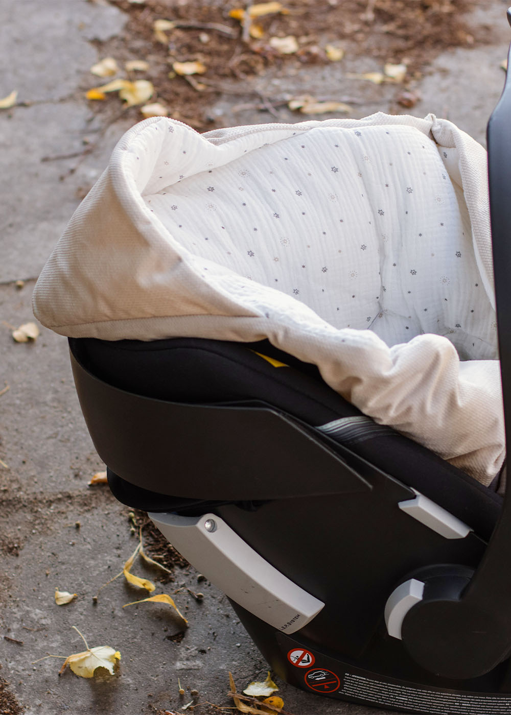 Muślinowy Kocyk do fotelika samochodowego - Little Stars i Ecru Velvet