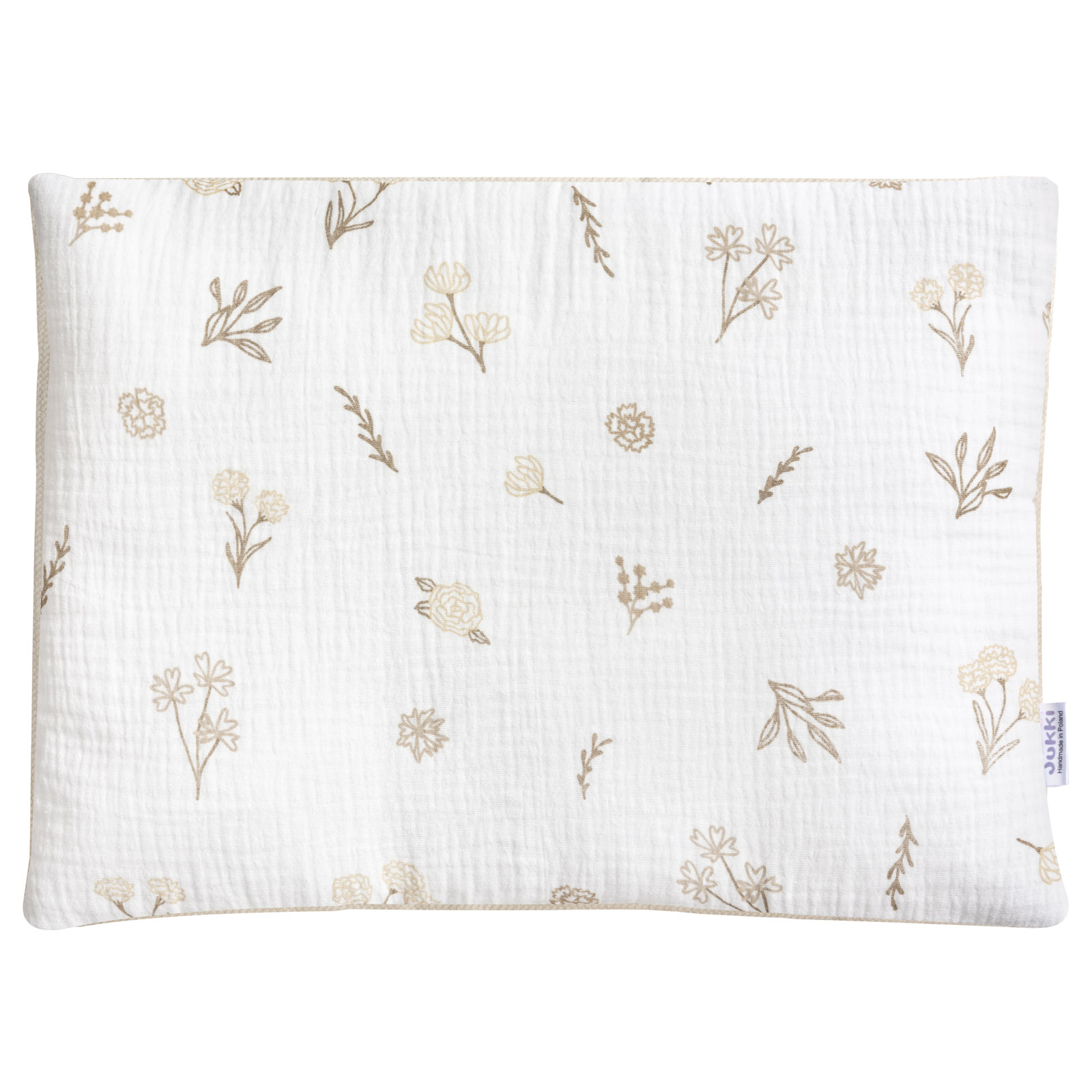 Poduszka o wymiarach 30 x 40 cm wypełniona antyalergiczna silikonową włókniną. Poduszka jest płaska, ma około 2cm wysokości, stworzona specjalnie dla niemowląt.
