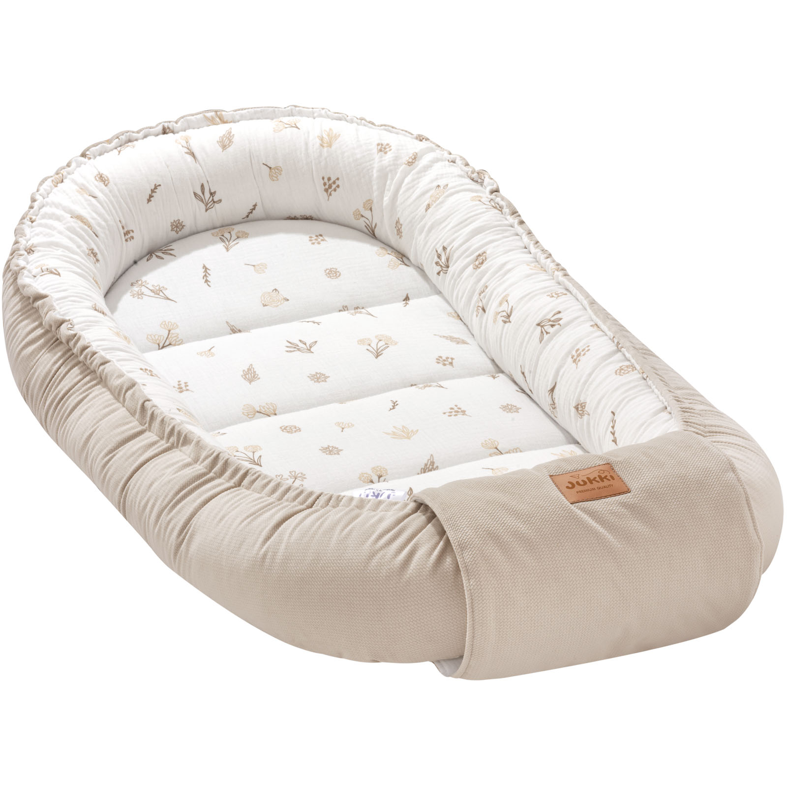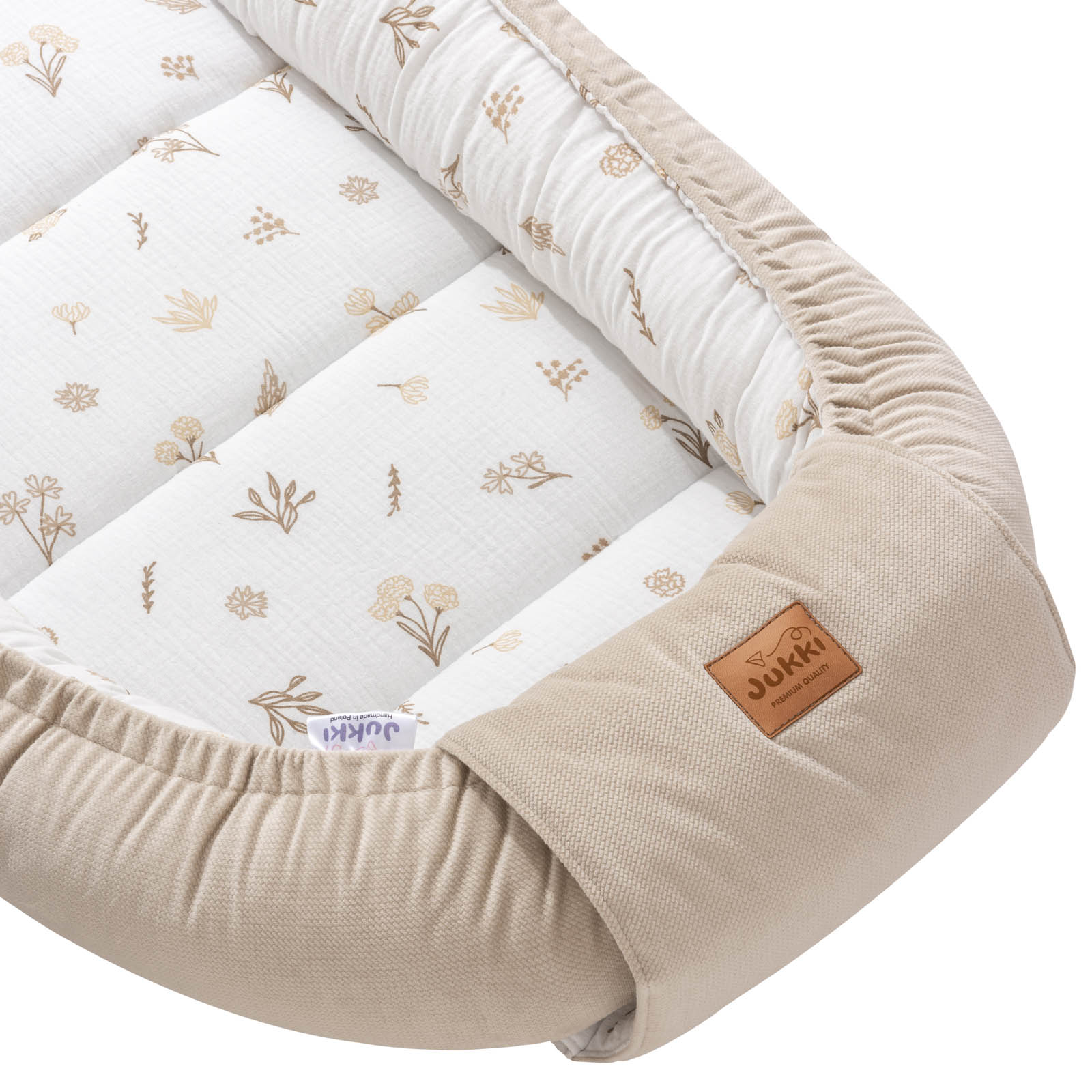 Kokon można skompletować z innymi produktami Jukki – mięciutkimi kocykami Minky, dekoracyjnymi poduszkami, koszami na zabawki – tak, by przestrzeń twojego malucha była harmonijna i tworzyła spójną całość.
