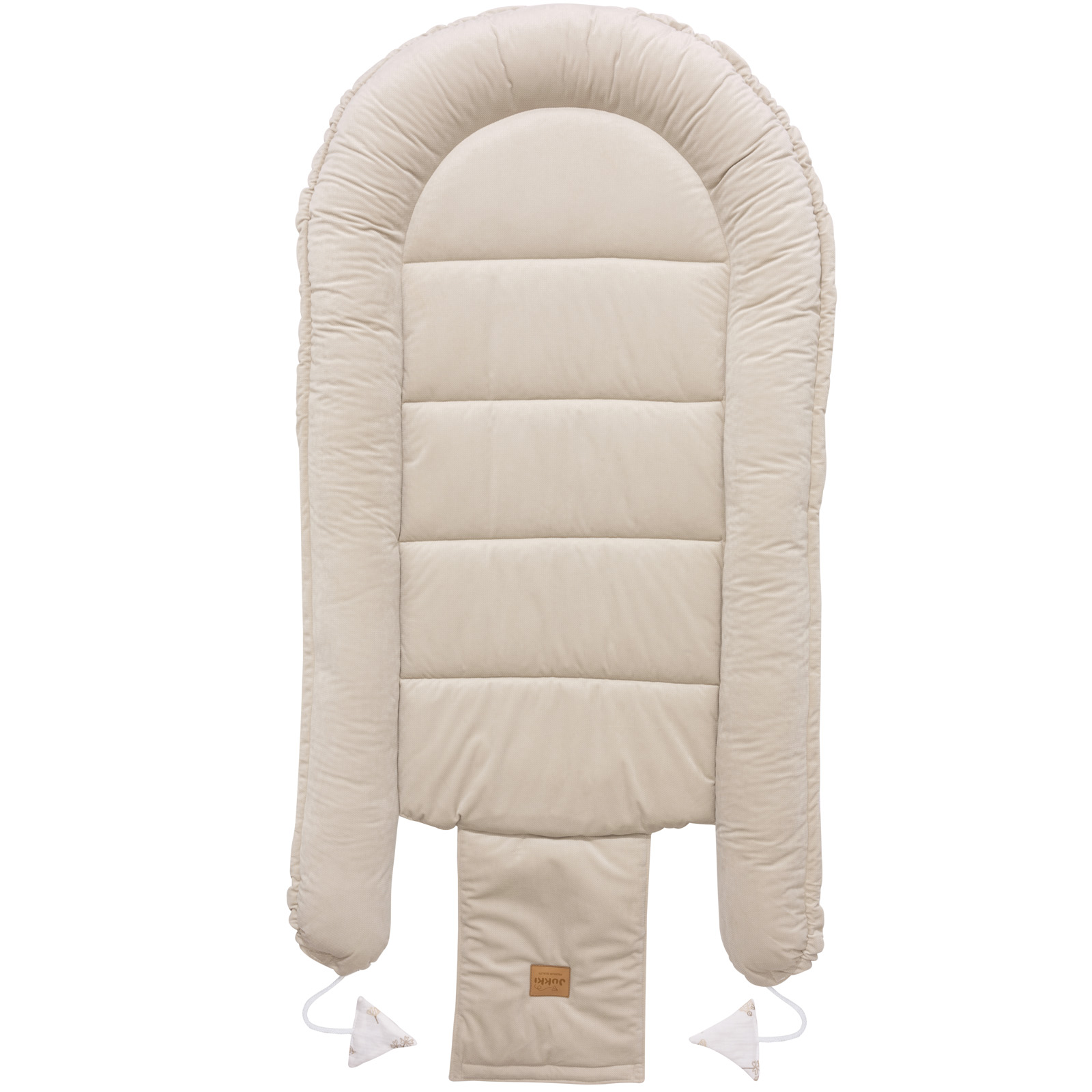 Gniazdko doskonale służy także starszym maluszkom stając się idealną przestrzenią do zabawy, leżenia na brzuszku i pierwszych ćwiczeń – podnoszenia główki czy leżących w jego zasięgu grzechotek. Rozwiązanie sznurków pozwala na używanie kokonu jako przewijaka.