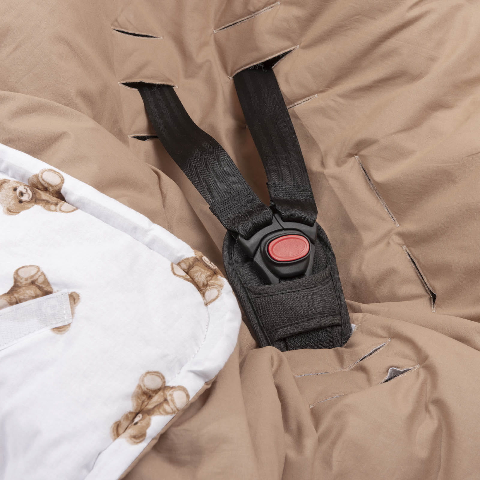 Otwory na pasy zostały umieszczone w strategicznych miejscach, dzięki czemu kocyk, otulacz Jukki pasuje do wszelkiego rodzaju fotelików (3-punktowych oraz 5 - punktowych, które posiadają opcję rozpięcia i ich regulacji), nosidełek, bujaczków, wózków. Dzięki temu możesz prawidłowo poprowadzić oraz zapiąć pasy bezpieczeństwa, nie pozostawiając żadnych niebezpiecznych luzów. Jest to szczególnie ważne podczas zimnych dni, kiedy ubieramy dziecko w kurtkę. Pamiętaj, że pasy w foteliku trzeba dobrze docisnąć, tak aby przylegały do ciała dziecka, a nie do jego ubrań.