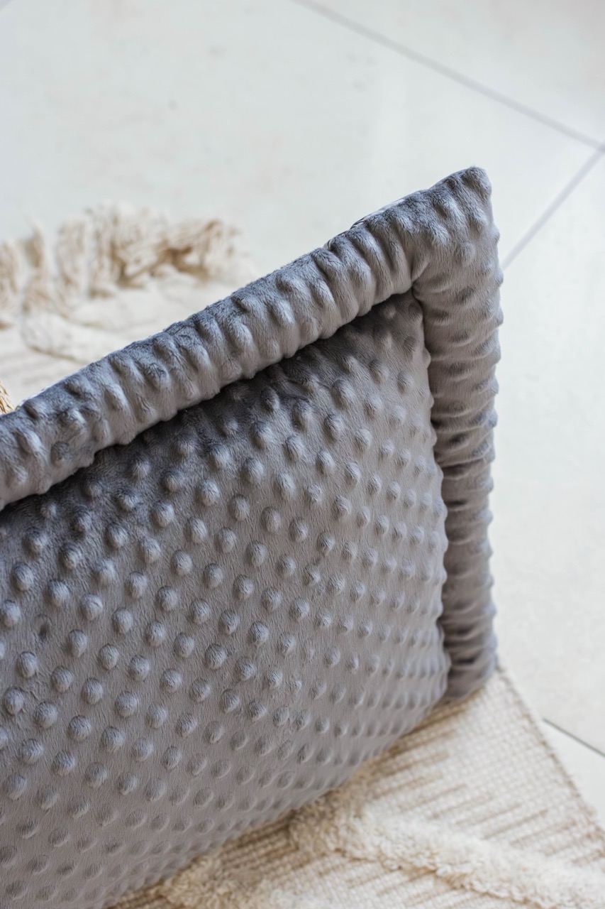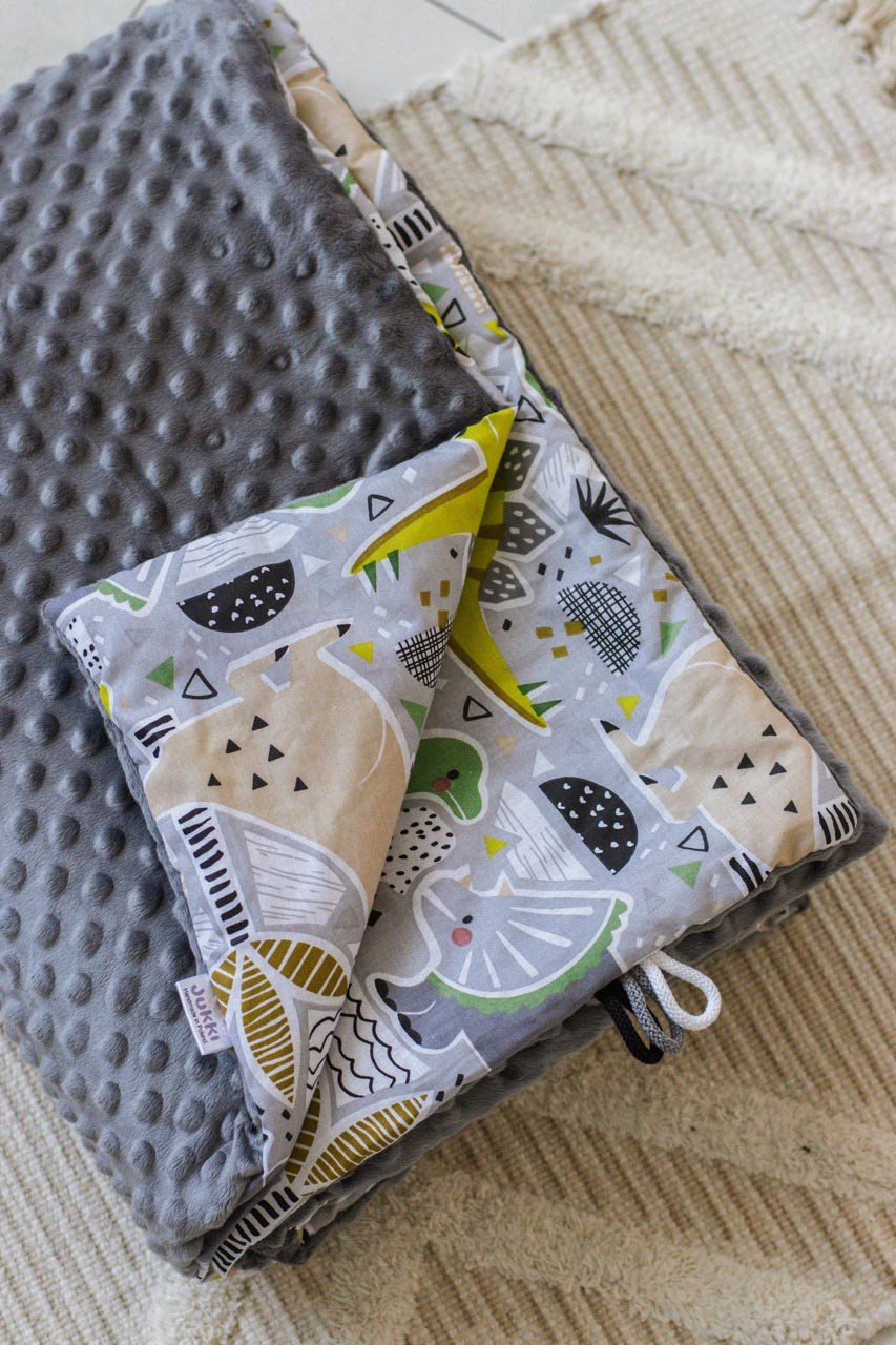 - dwustronny: gładka bawełna i mięciutki Minky w kropeczki