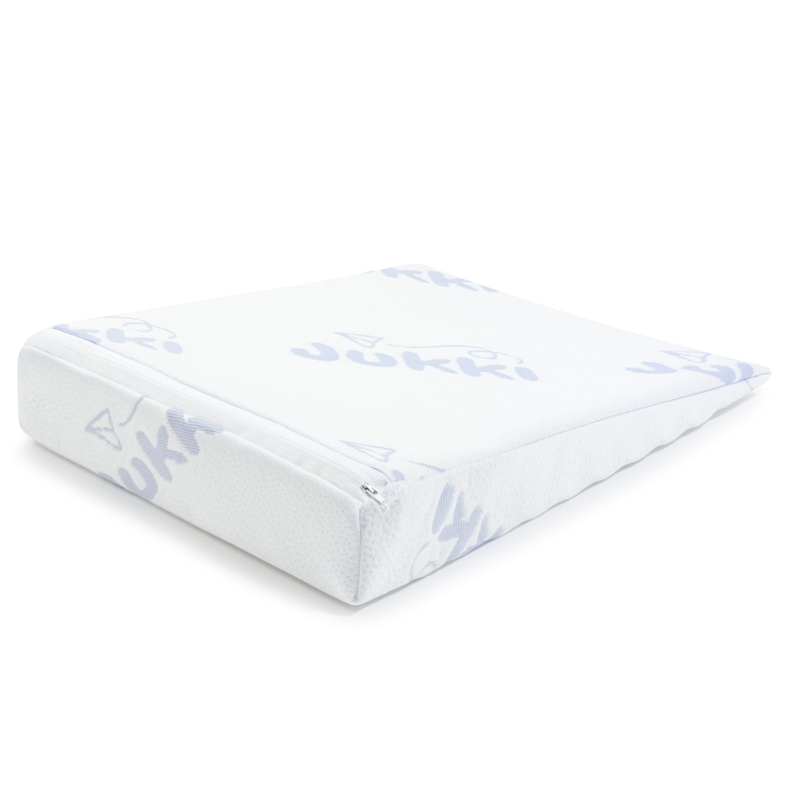 Poduszka- klin Jukki, ułatwiająca oddychanie oraz zapewniająca bezpieczny sen, została wykonana z bezpiecznej, certyfikowanej pianki z perforacją na całej powierzchni.
