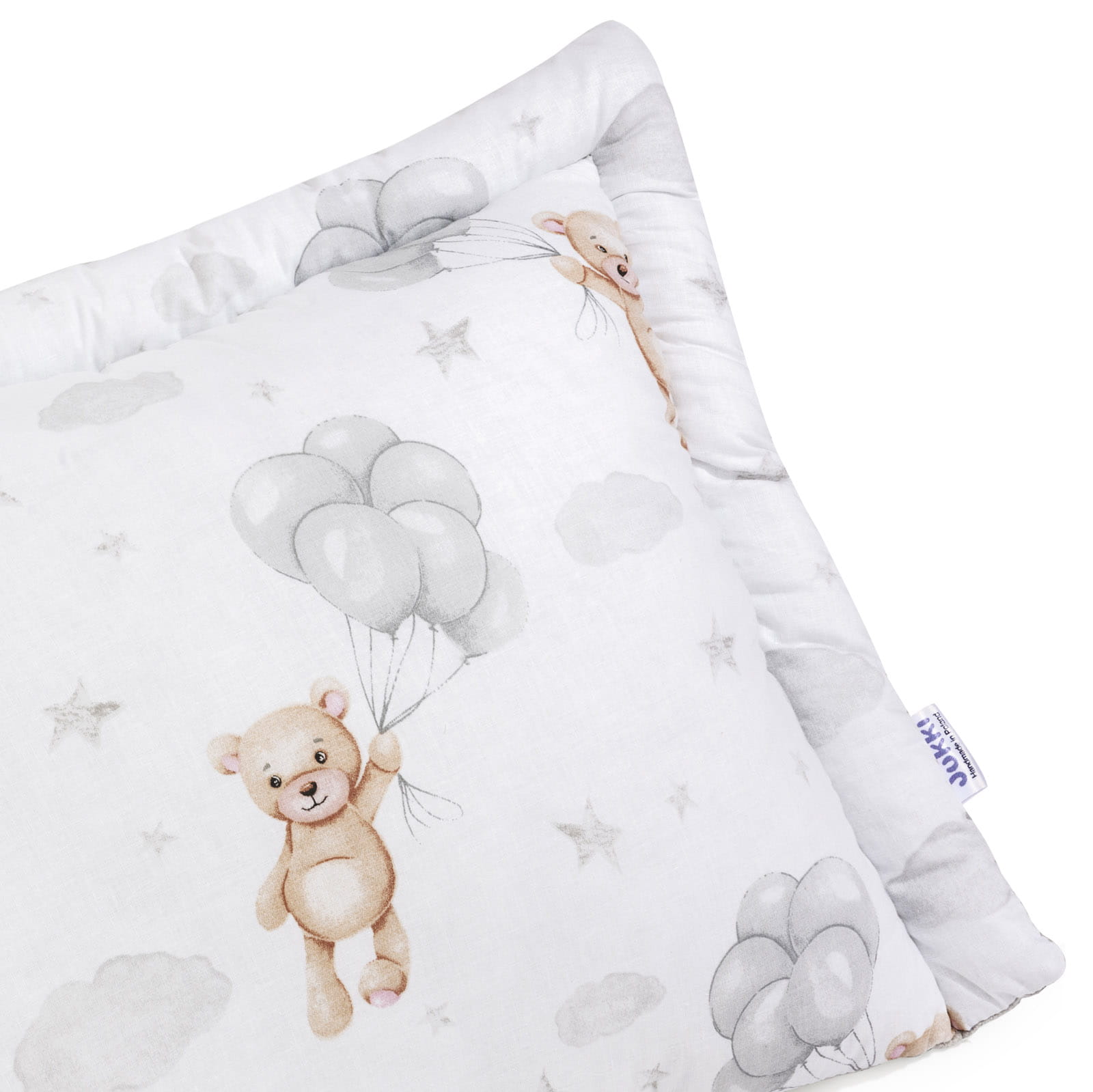 Pełna poduszka JUKKI wykonana została dwustronnie, z jednej strony jest to 100% bawełna, z drugiej natomiast mięciutka tkanina minky. Wnętrze stanowi antyalergiczne, miękkie wypełnienie silikonowe zapewniające ciepło i wentylację. Poduszka zapewni komfortowy i bezpieczny sen dla Twojego dziecka. Dwustronna kolorystyka sprawi, że produkt nigdy nie staje się nudny - łatwo możesz zmienić aranżację pokoju.
