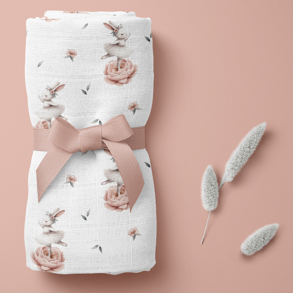 Pieluszka bambusowa dla NIEMOWLĄT w KRÓLICZKI 75 cm x 75 cm