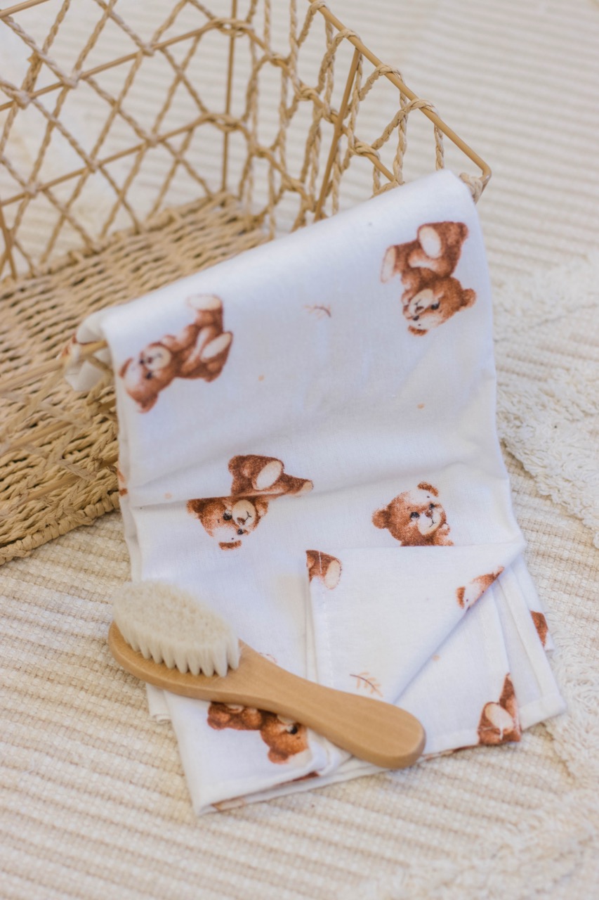 Pieluszki JUKKI są bardzo miękkie i są niezbędnym elementem wyprawki - niezastąpione zarówno w okresie noworodkowym, jak i niemowlęcym. Tkanina to wysokiej jakości flanela o dużej gramaturze wykonana ze 100% bawełny, cechująca się lekkością i przewiewnością. Pieluszki z tego materiału mogą być wykorzystywane już od pierwszych dni życia: