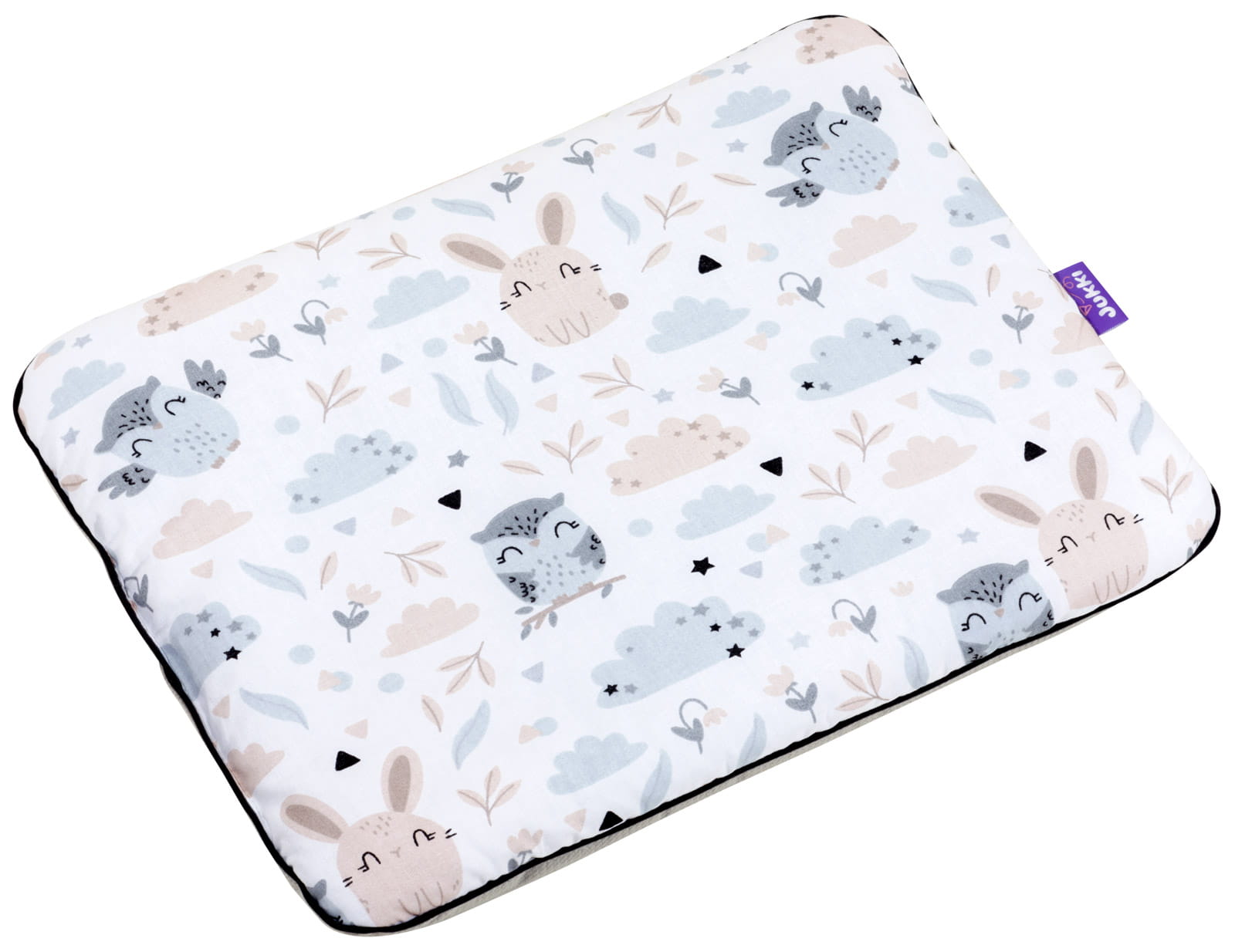 Kolorowa i miękka płaska poduszka niemowlęca JUKKI sprawi, że łóżko Twojego dziecka będzie jeszcze bardziej przytulne. Poduszka idealnie sprawdzi się od 1 dnia życia.