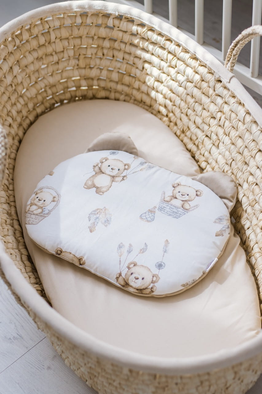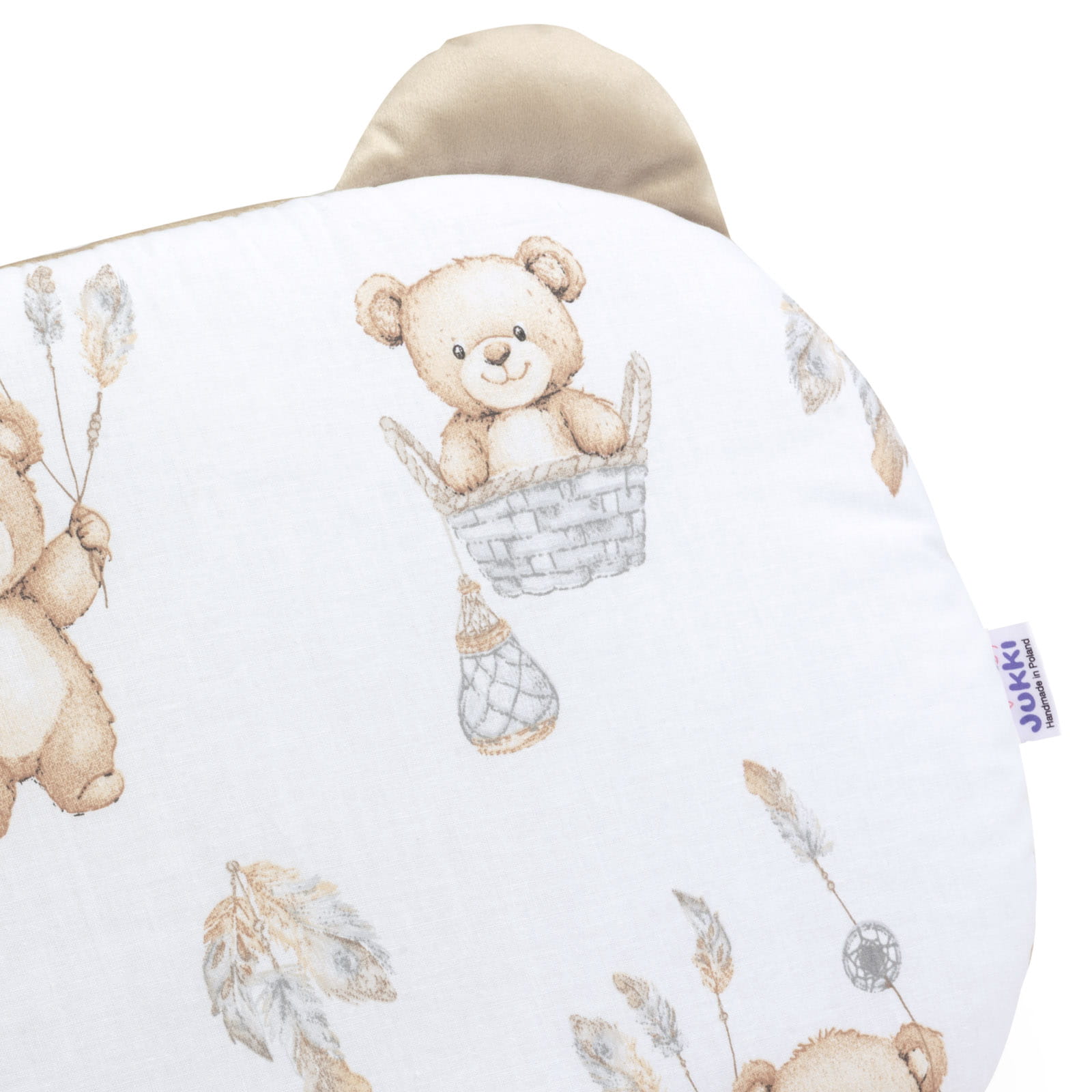 Poduszka płaska MIŚ do wózka lub łóżeczka w uroczym kształcie główki misia z uszkami. Świetnie sprawdzi się w codziennym odpoczynku oraz na rodzinnych spacerach. Można jej używać już od 1 dnia życia.