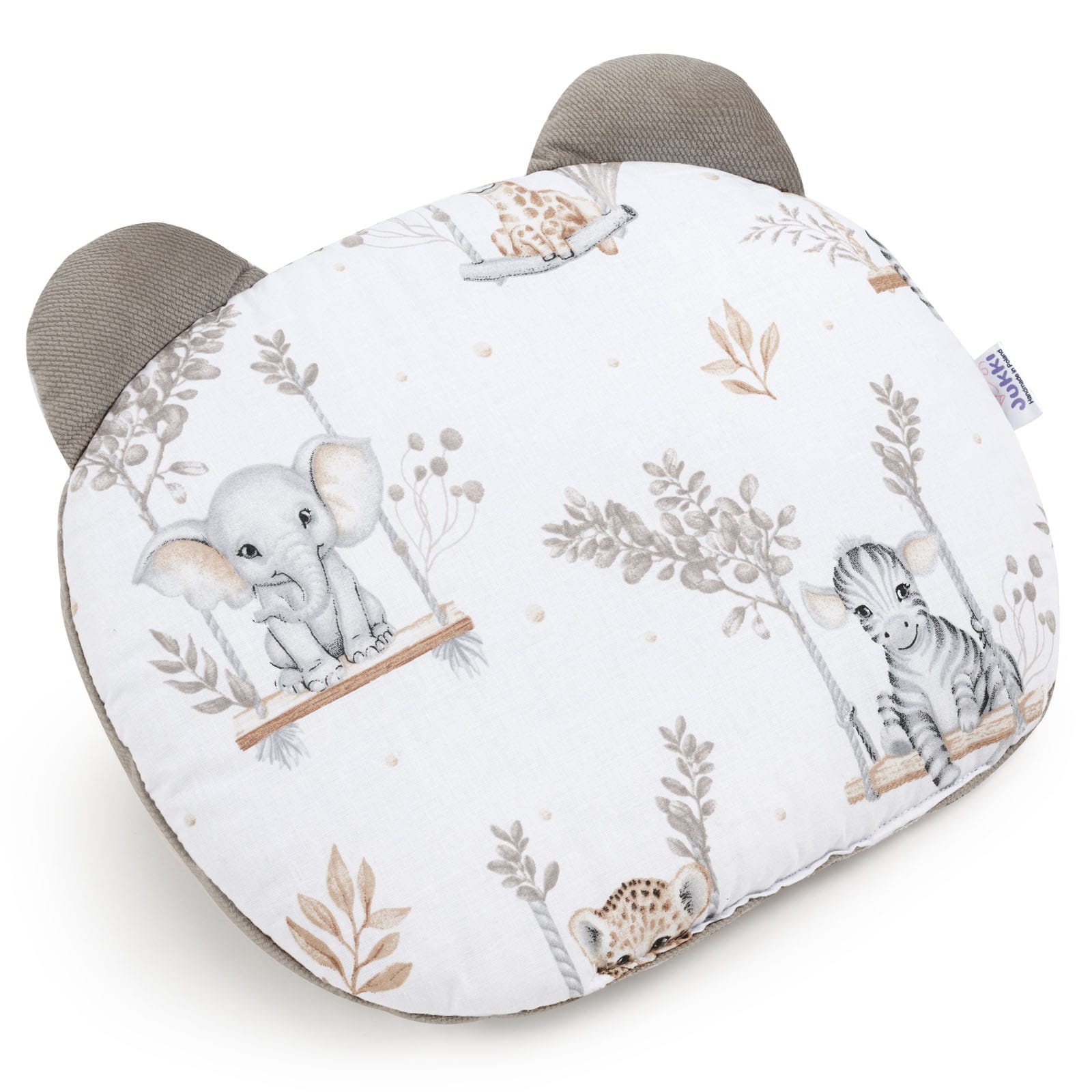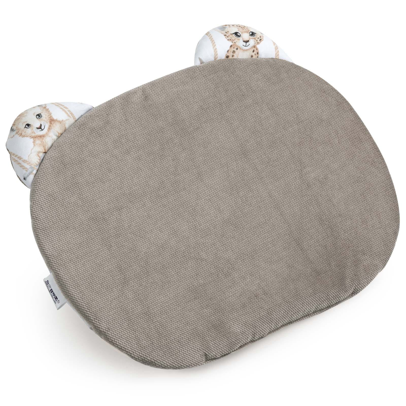 Poduszka płaska MIŚ do wózka lub łóżeczka w uroczym kształcie główki misia z uszkami. Świetnie sprawdzi się w codziennym odpoczynku oraz na rodzinnych spacerach. Można jej używać już od 1 dnia życia.