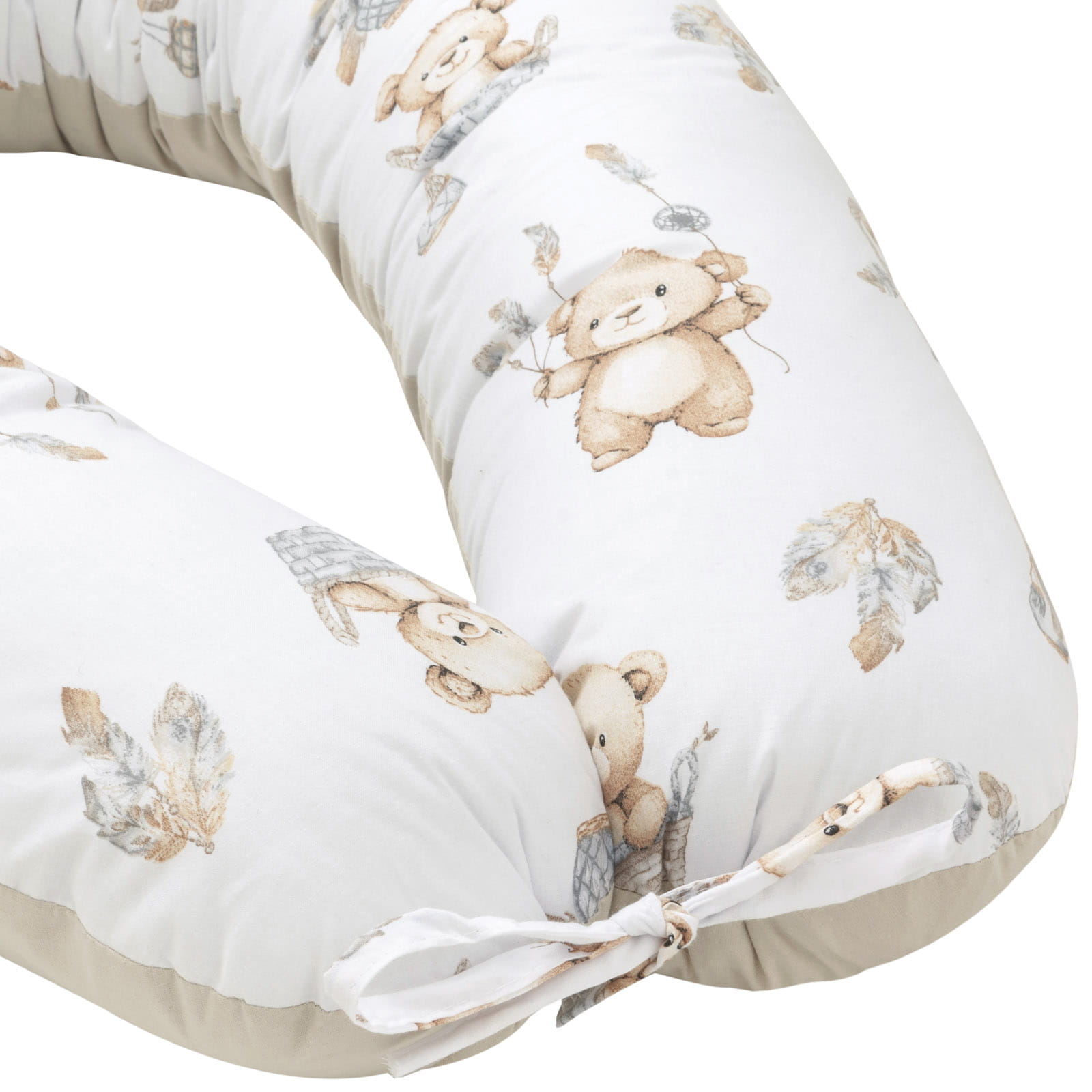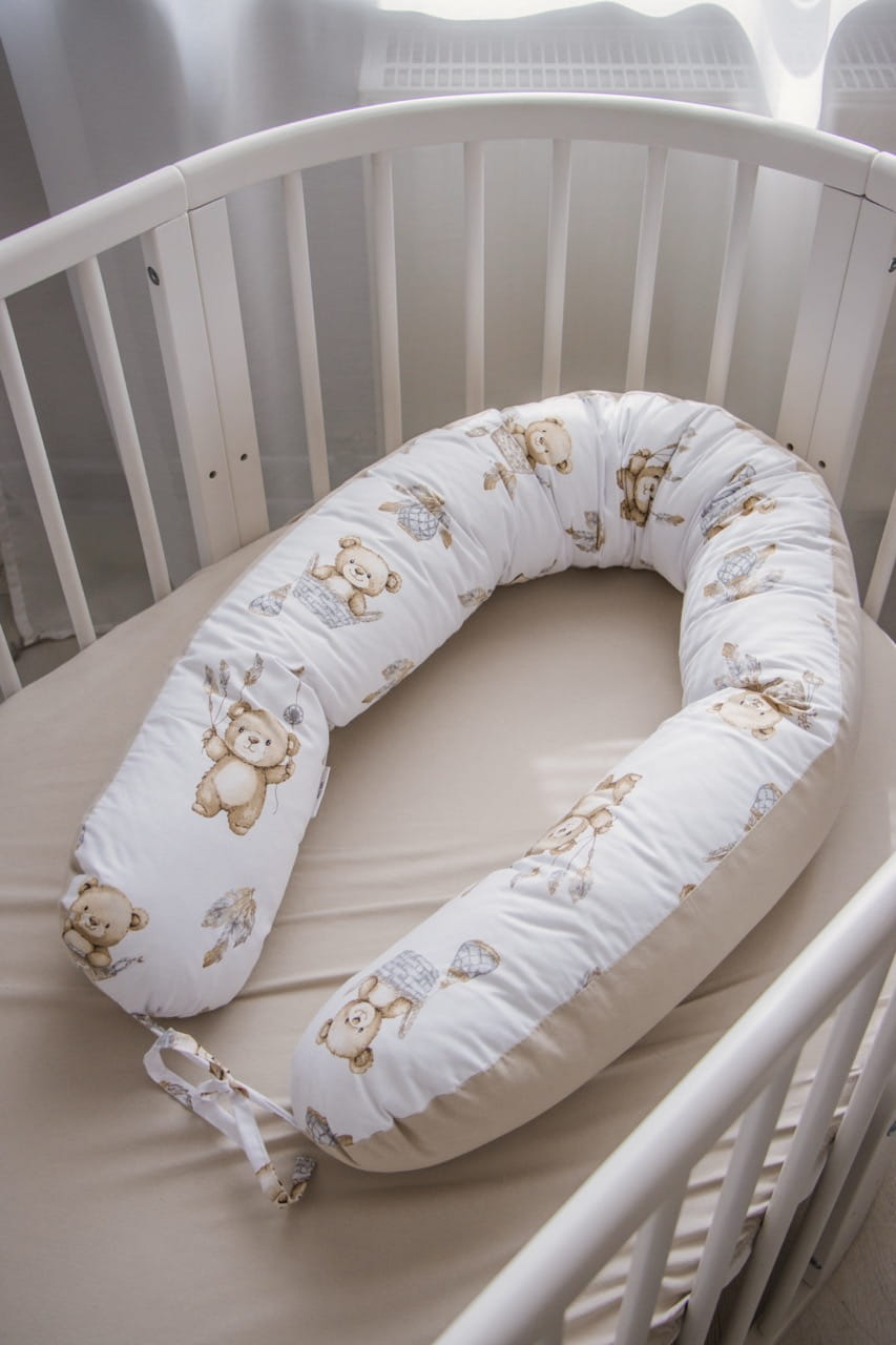 Duży rozmiar poduszki (170cm- długość po obwodzie) to gwarancja wygodnej pozycji dla dziecka i mamy- zarówno podczas karmienia, jak i podczas zabawy czy wypoczynku.