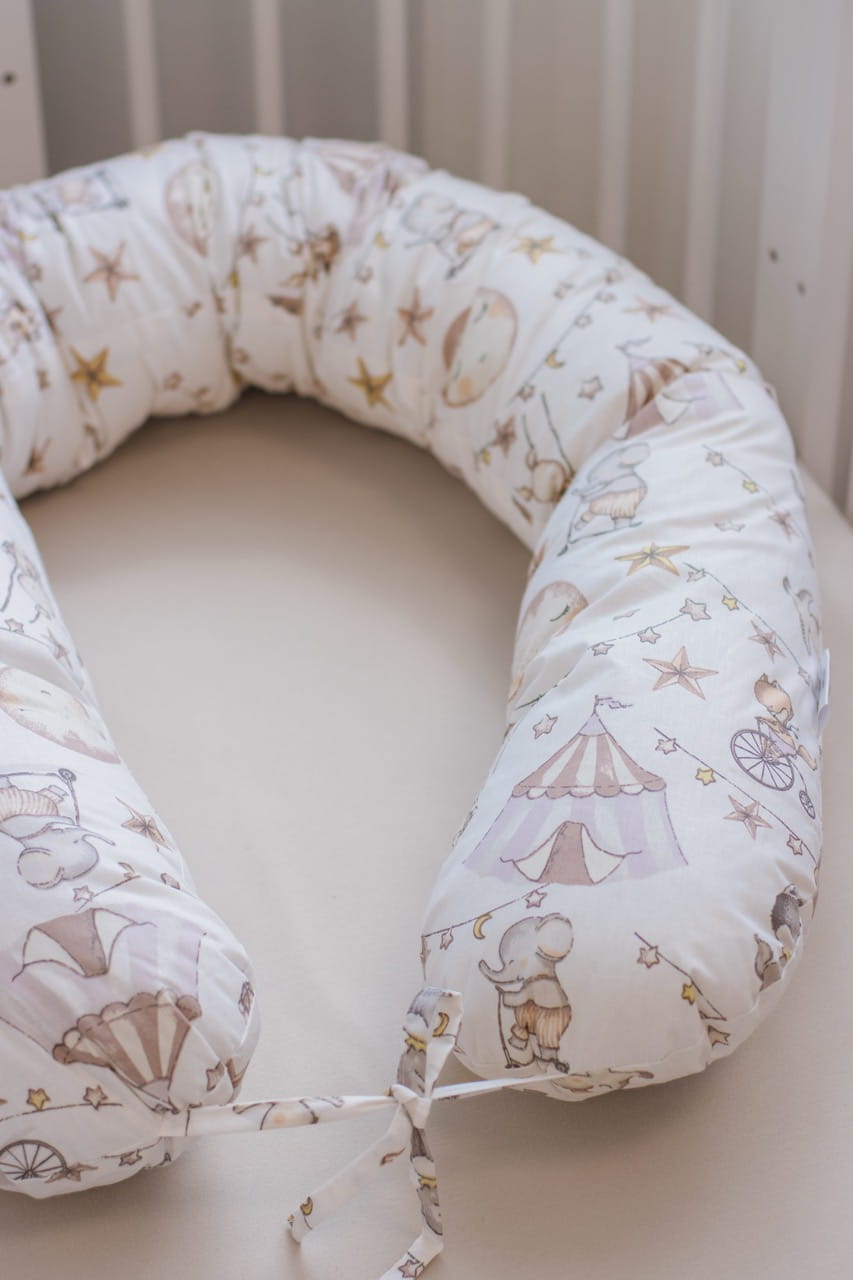 Duży rozmiar poduszki (170cm- długość po obwodzie) to gwarancja wygodnej pozycji dla dziecka i mamy- zarówno podczas karmienia, jak i podczas zabawy czy wypoczynku.