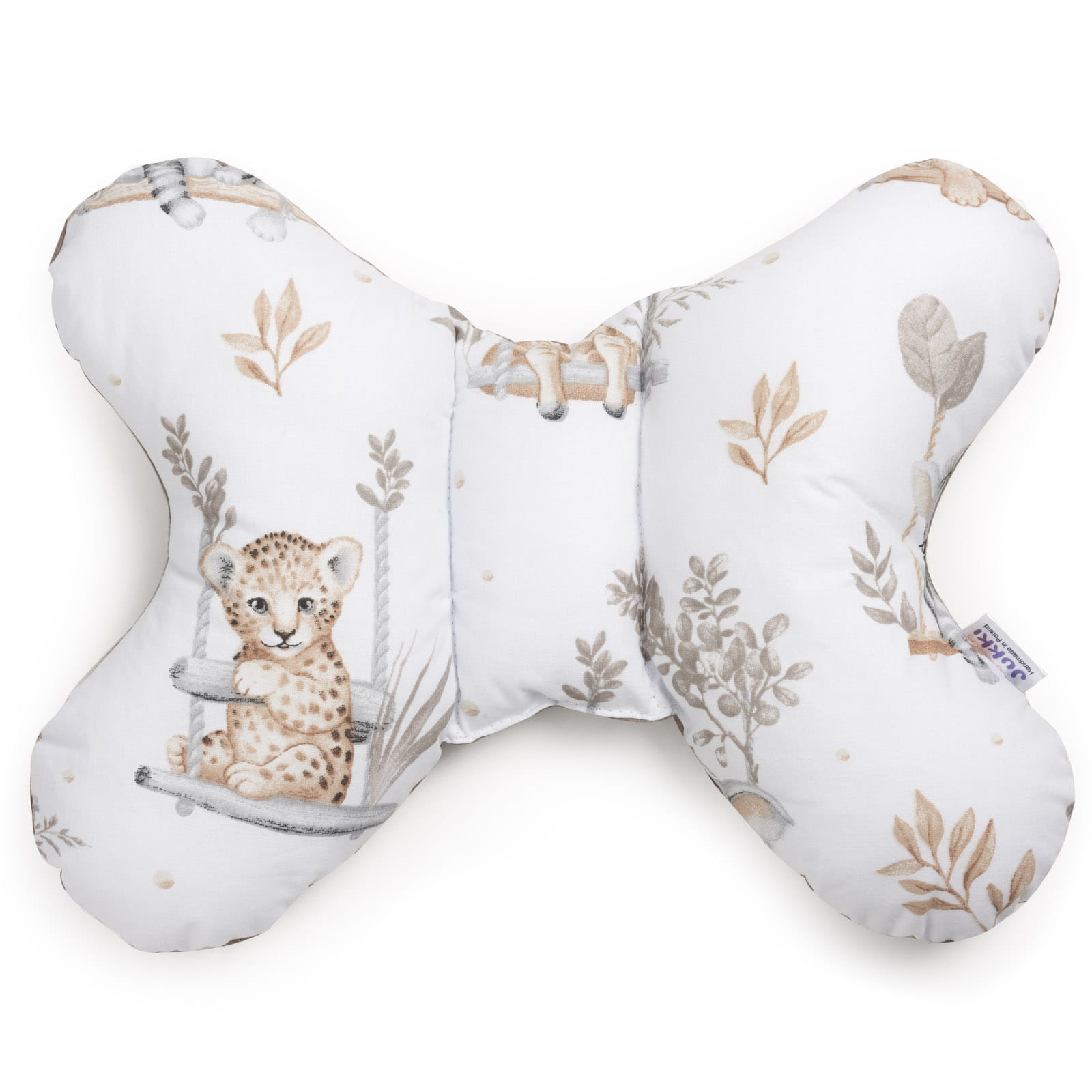 Motylek Jukki szyjemy 100% ręcznie. Dzięki temu macie pewność, że ich wykonanie jest na najwyższym poziomie, z dbałością o każdy detal i najwyższą starannością. Poduszki nie zawierają twardych elementów, są mięciutkie a zarazem sprężyste i całkowicie bezpieczne dla niemowląt.