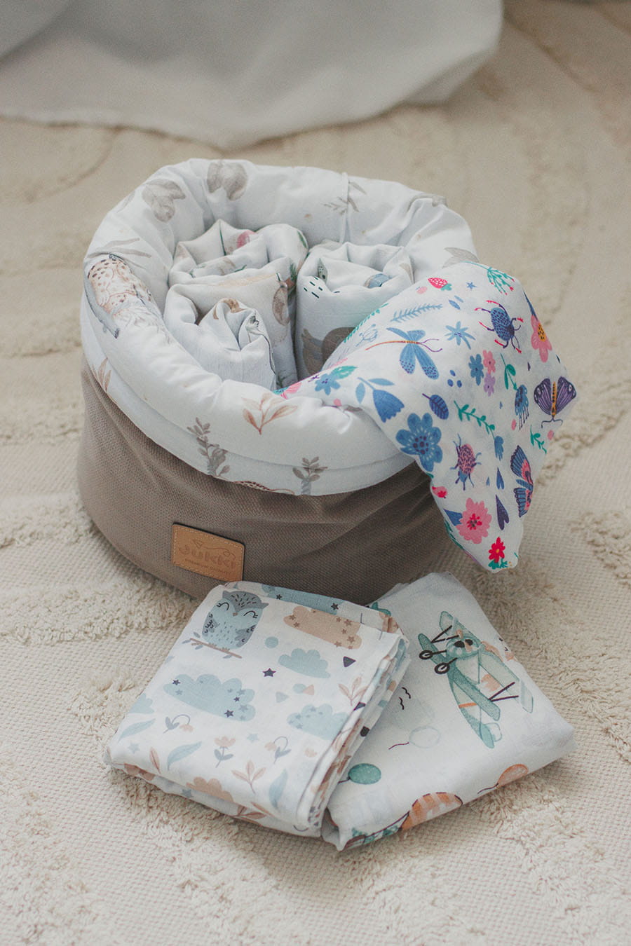 Pojemnik / koszyk na akcesoria dla niemowlaka - Happy Jungle i Latte Velvet