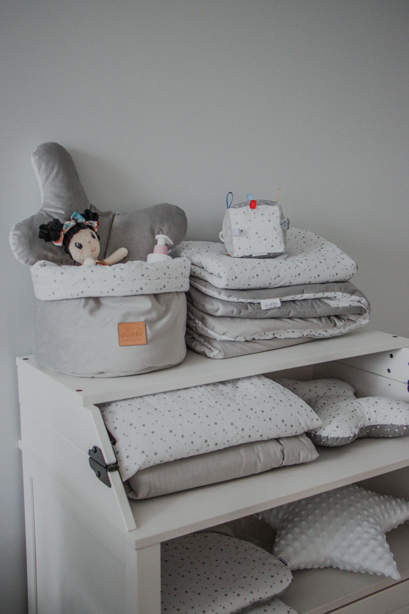 Pojemnik / koszyk na akcesoria dla niemowlaka - Twinkle Stars i szary Velvet