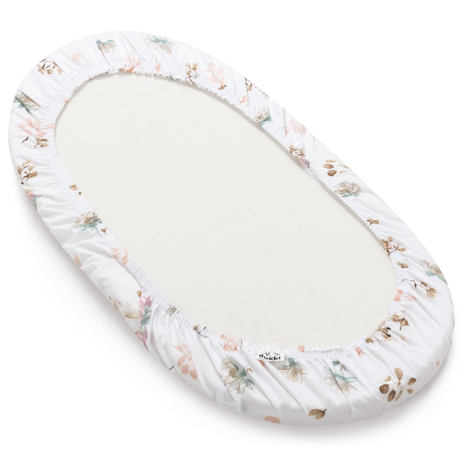 Prześcieradło bawełniane JUKKI o wymiarach 80x40 cm pasuje idealnie na materac do gondoli wózka, do kosza Mojżesza lub innej kołyski.