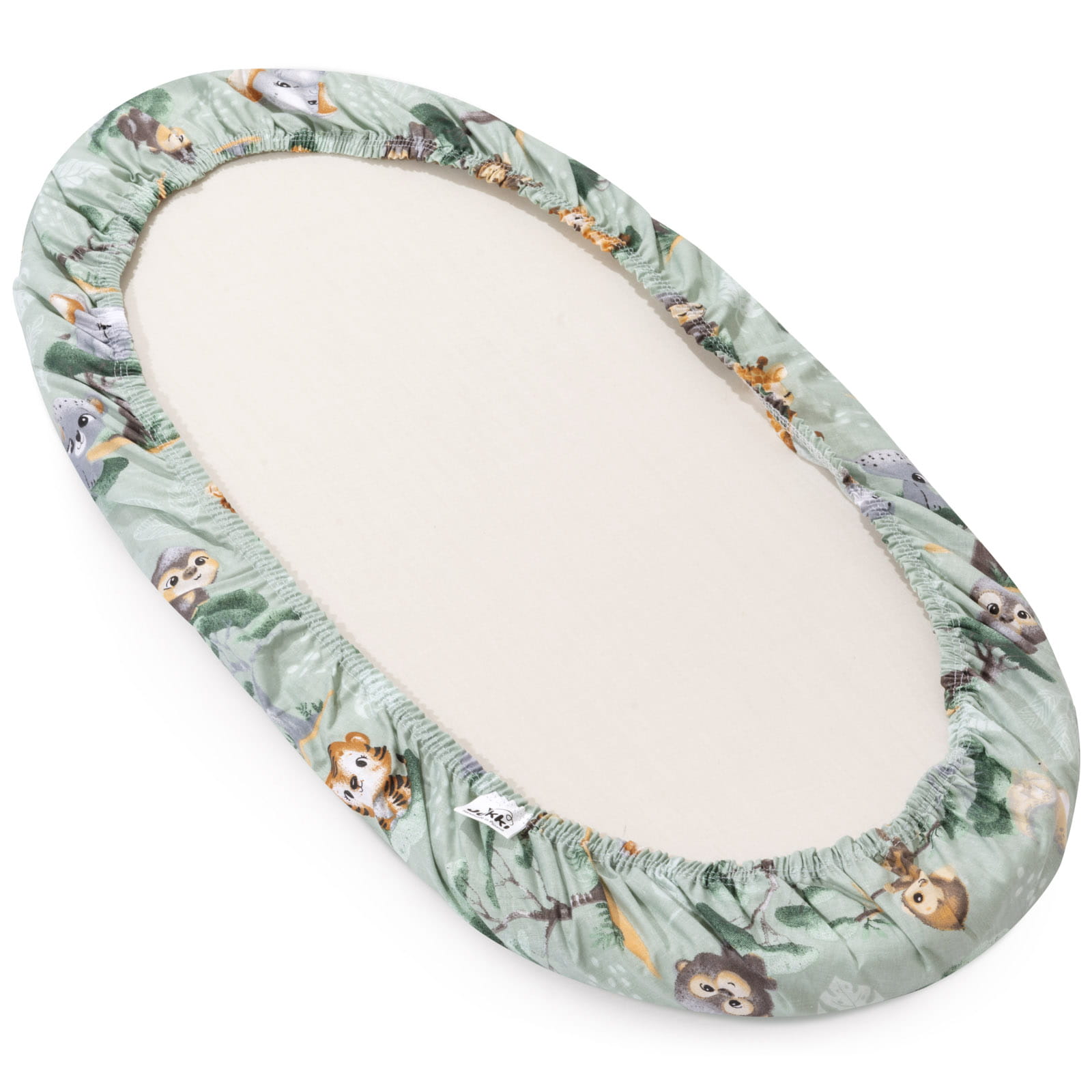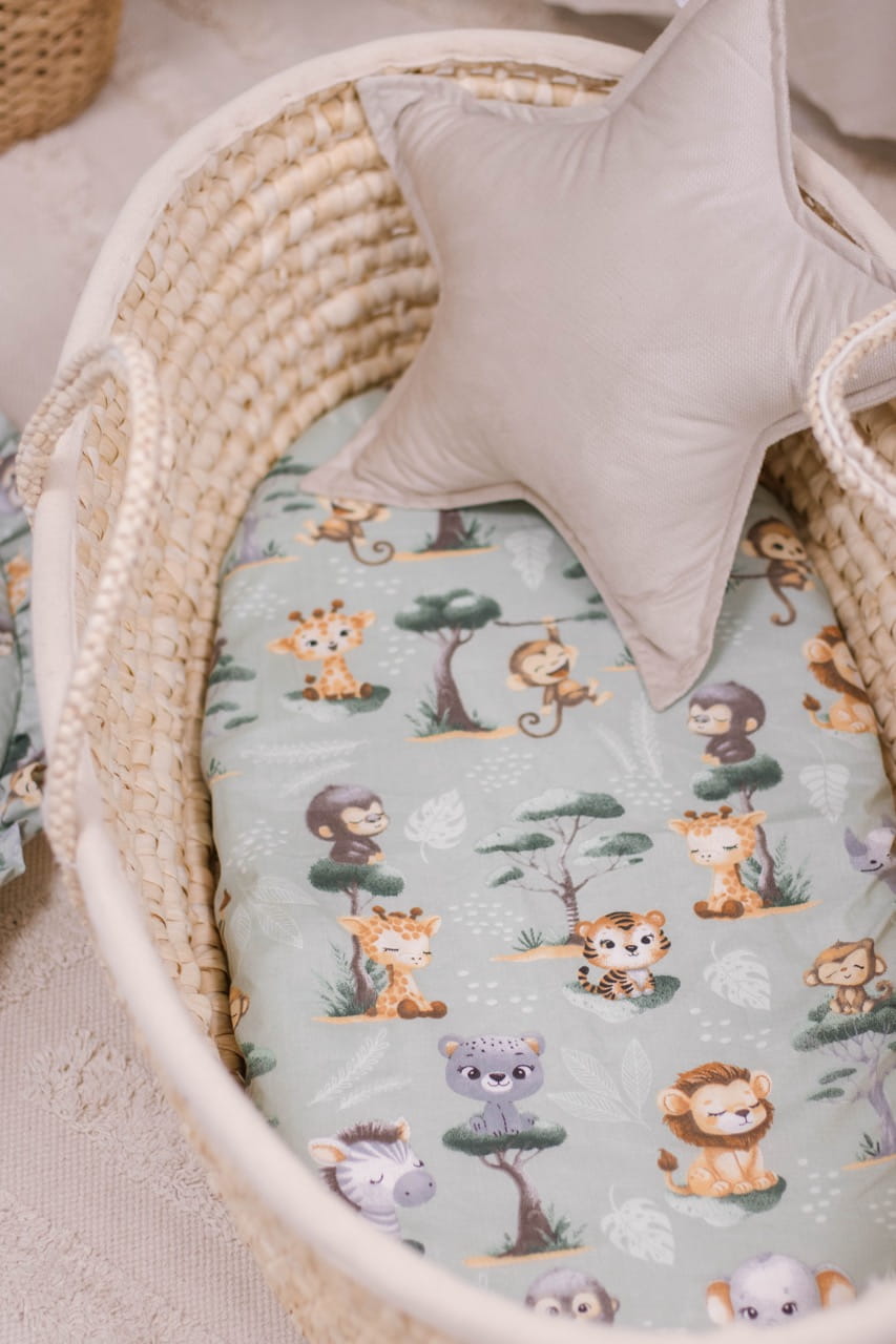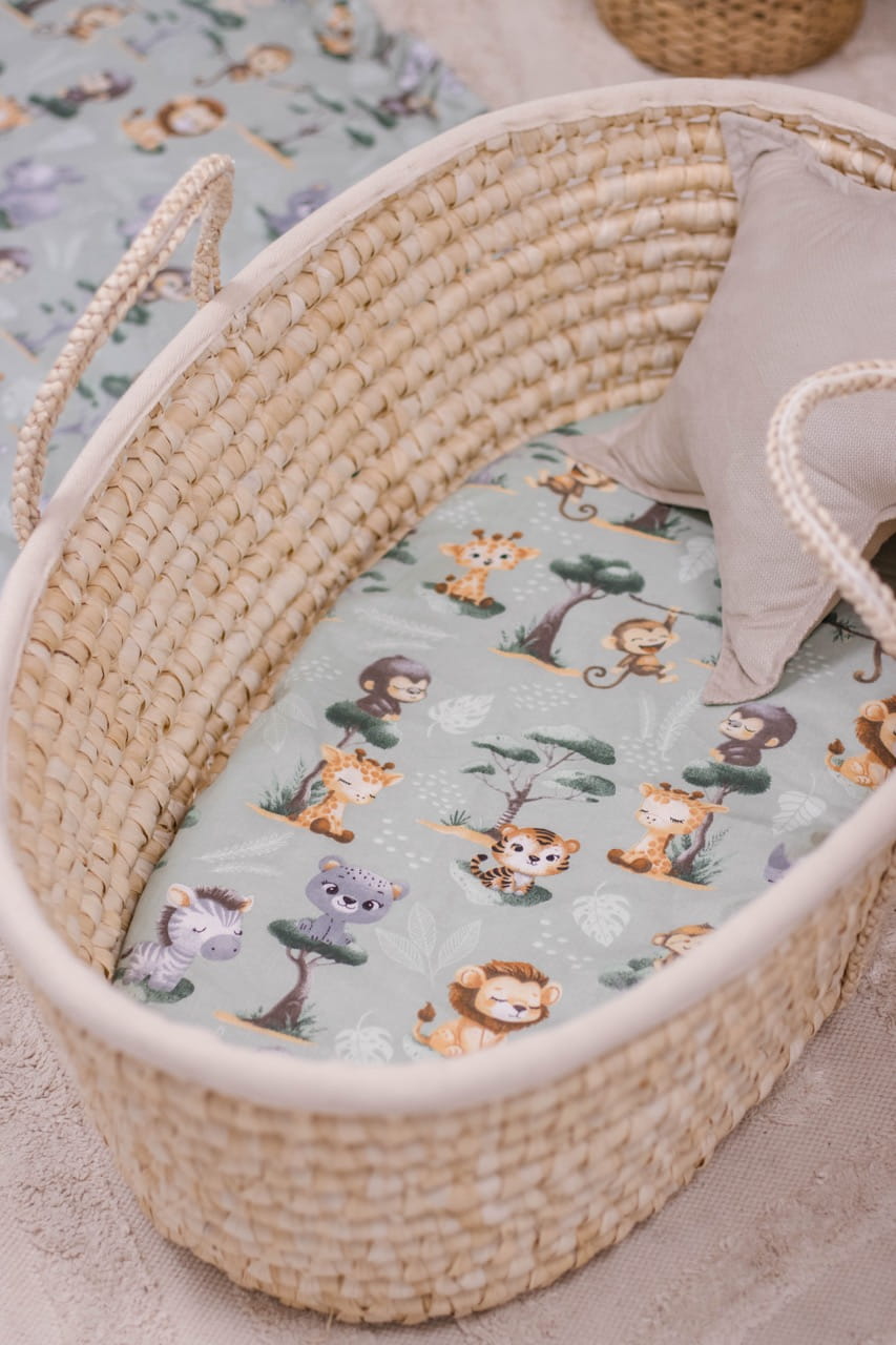 Prześcieradło bawełniane JUKKI o wymiarach 80x40 cm pasuje idealnie na materac do gondoli wózka, do kosza Mojżesza lub innej kołyski.