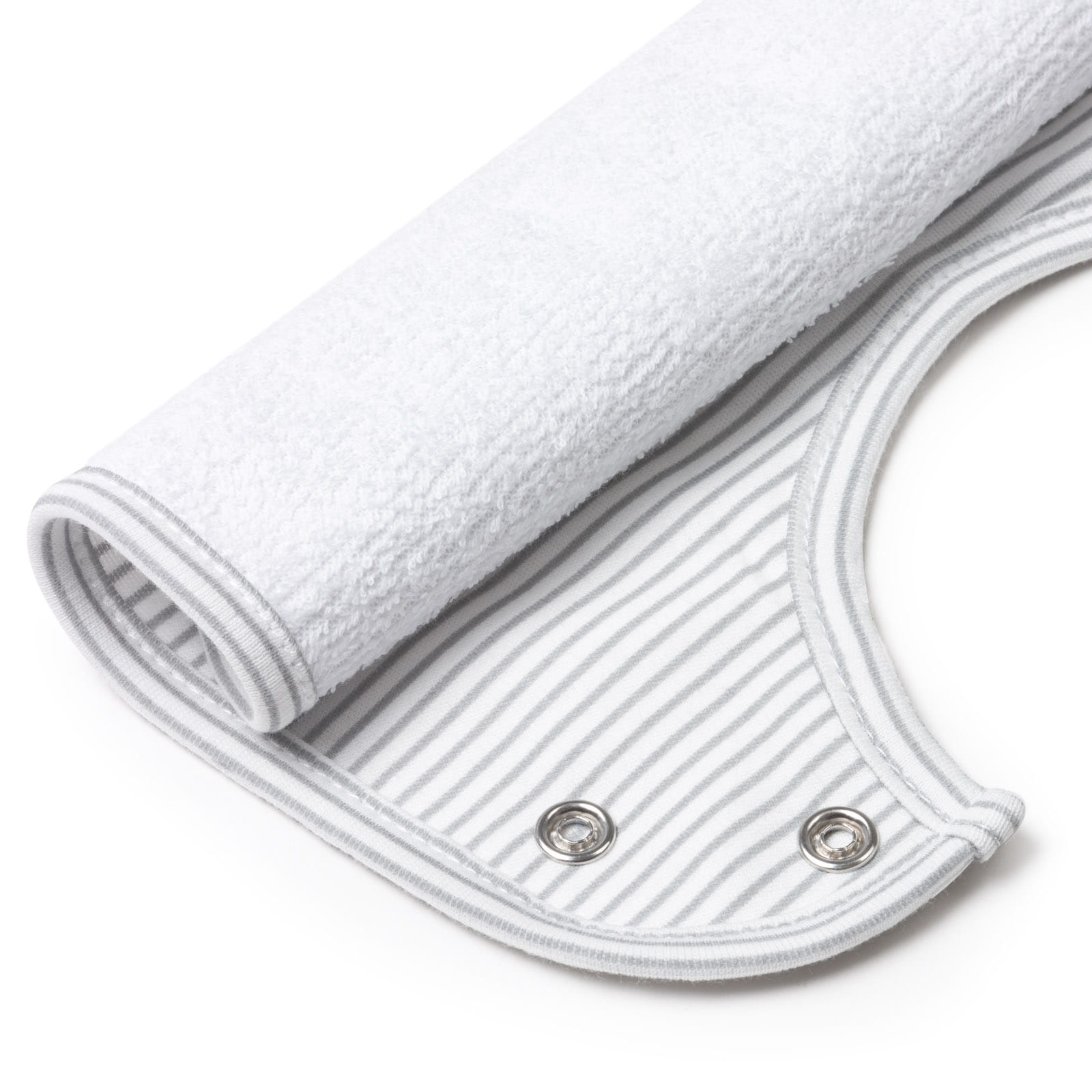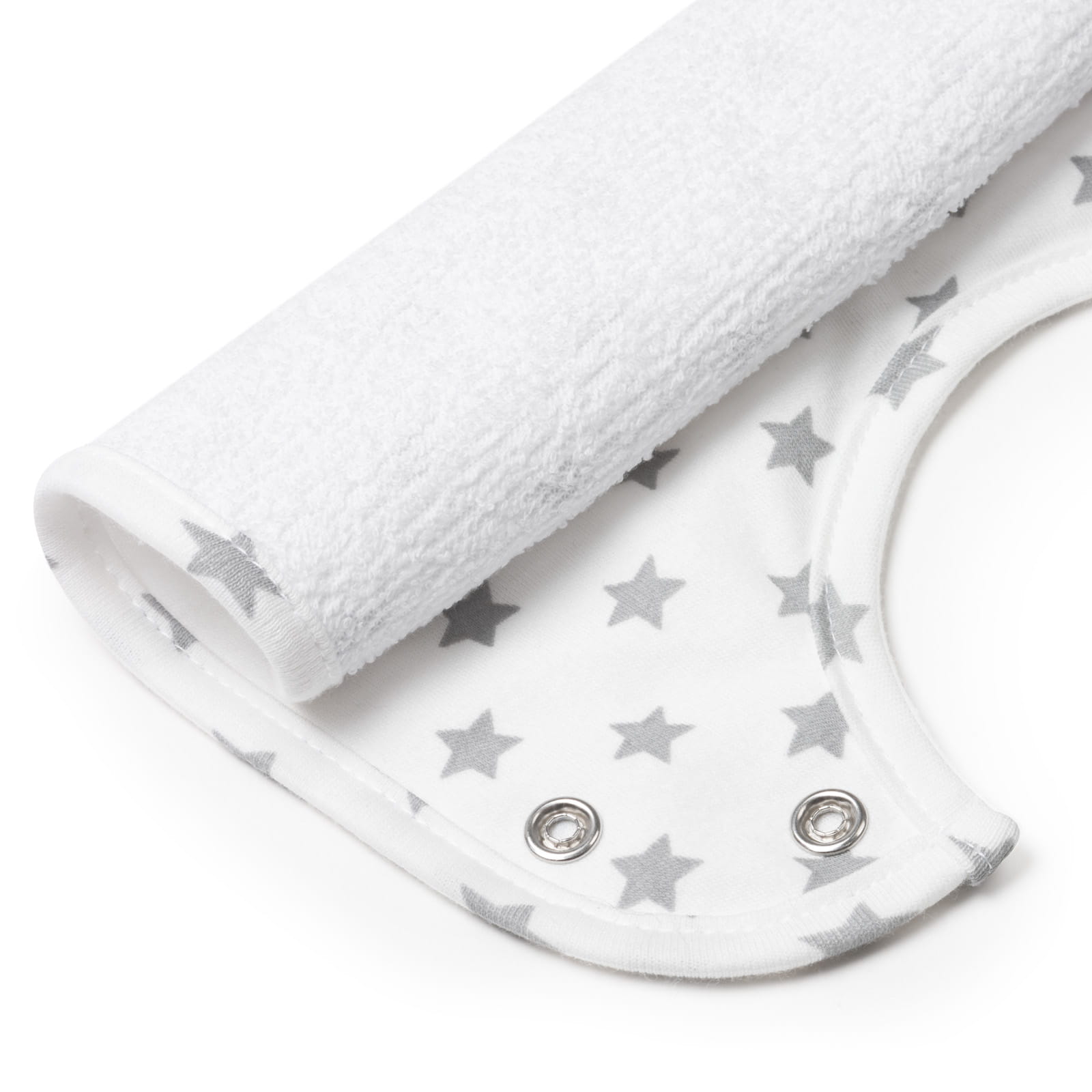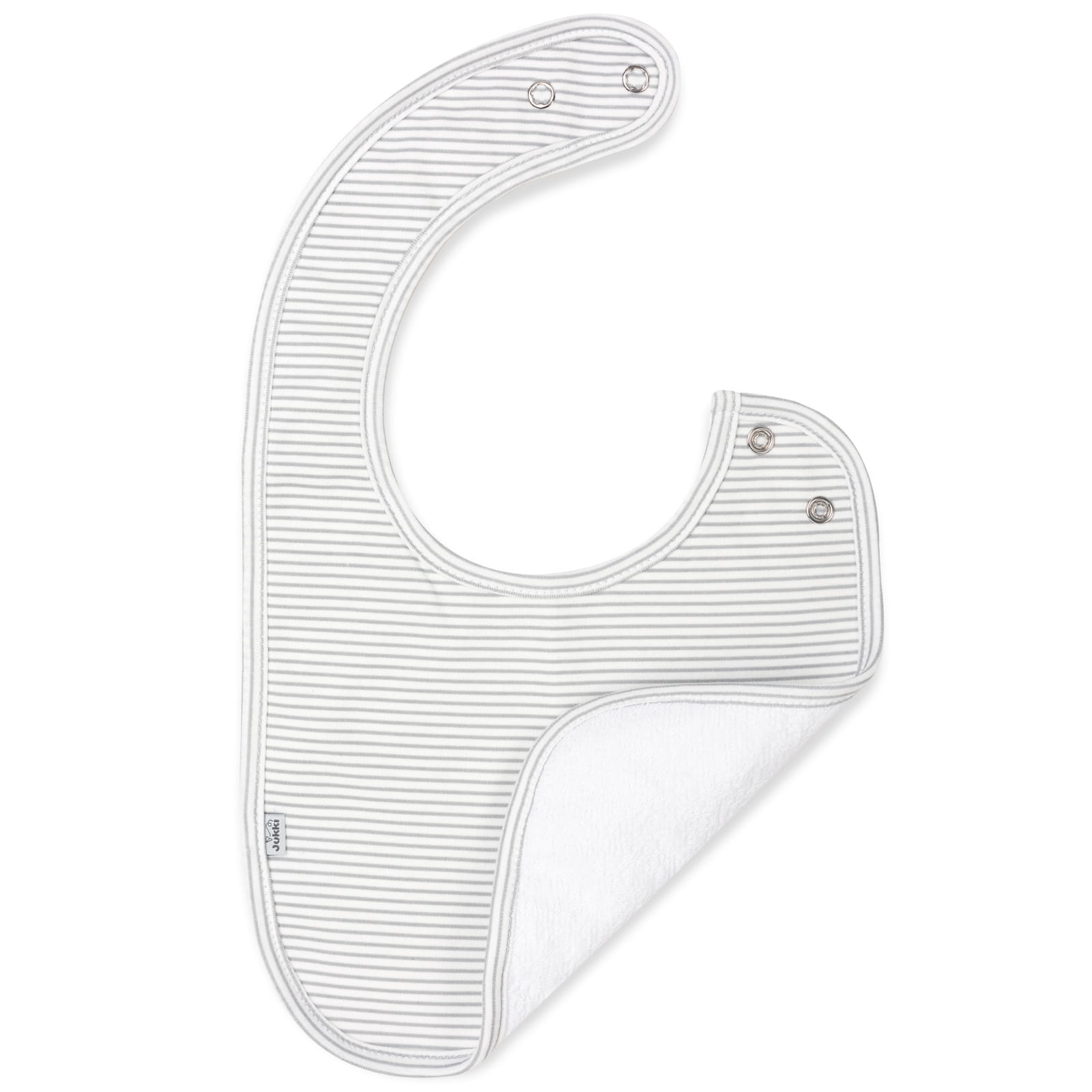 Wygodne, regulowane zapięcie na dwa napy sprawia, że nawet najbardziej niecierpliwemu maluchowi nie przeszkadza zakładanie śliniaka.