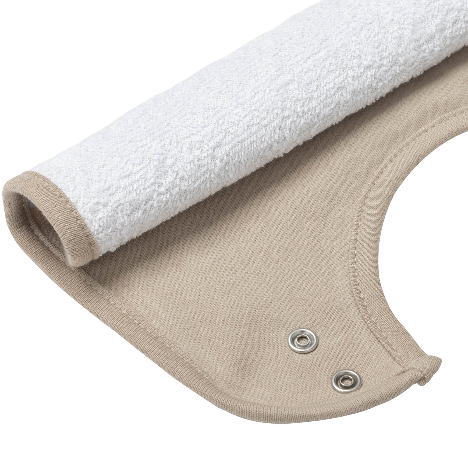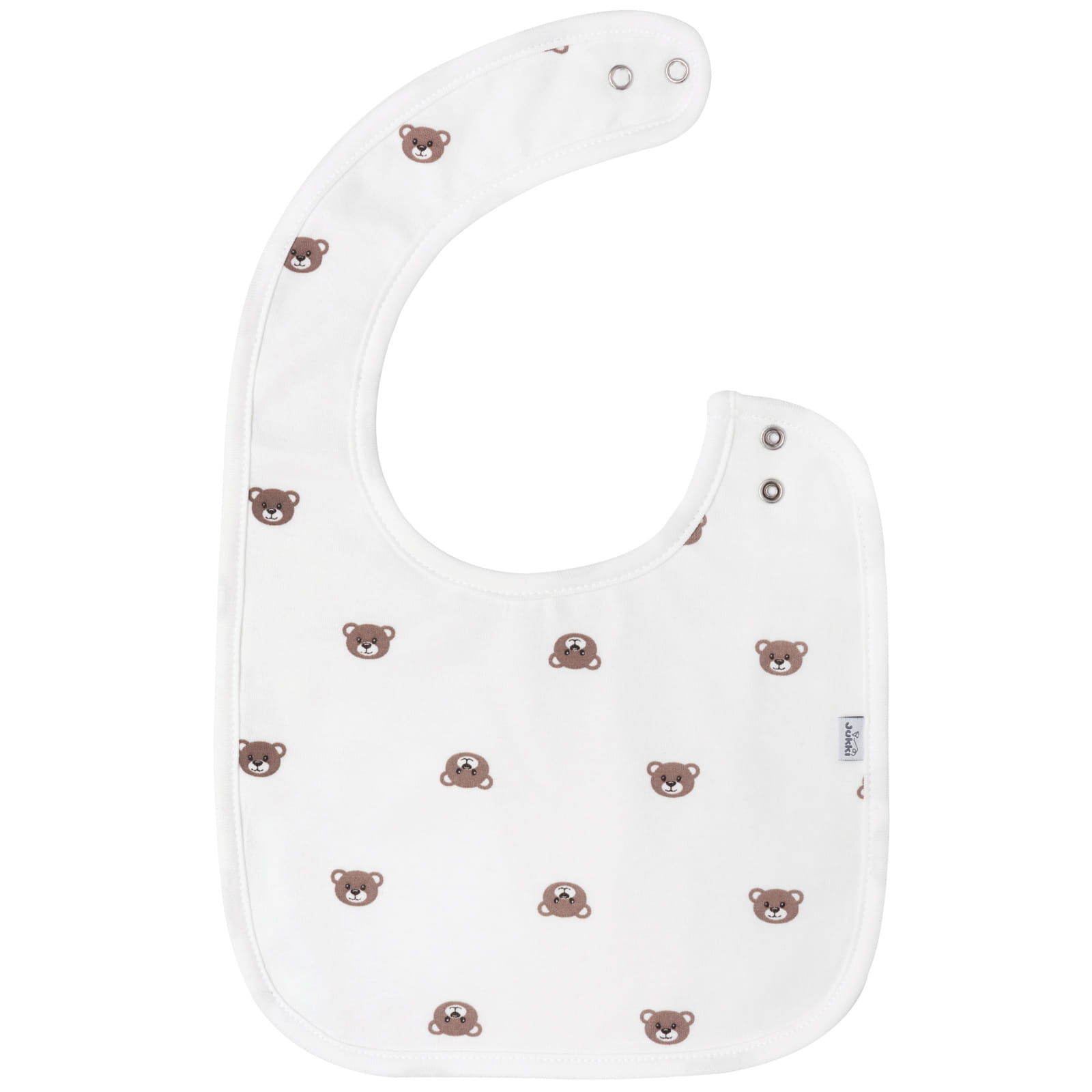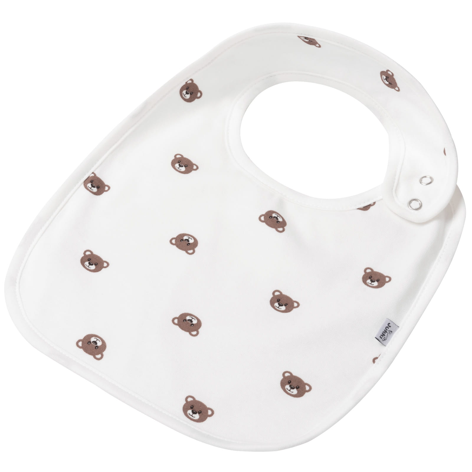 Wygodne, regulowane zapięcie na dwa napy sprawia, że nawet najbardziej niecierpliwemu maluchowi nie przeszkadza zakładanie śliniaka.