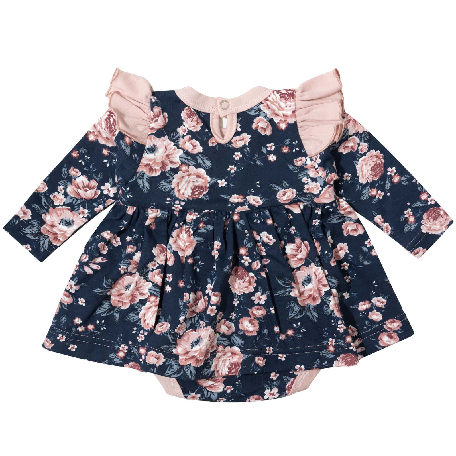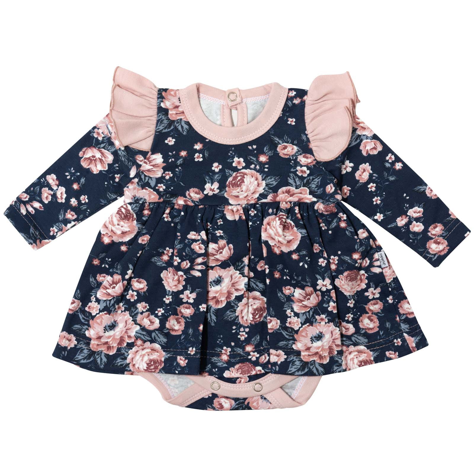 Bawełniana sukienka niemowlęca to połączenie klasycznego, wygodnego body rozpinanego w kroku z doszytą uroczą falbanką.