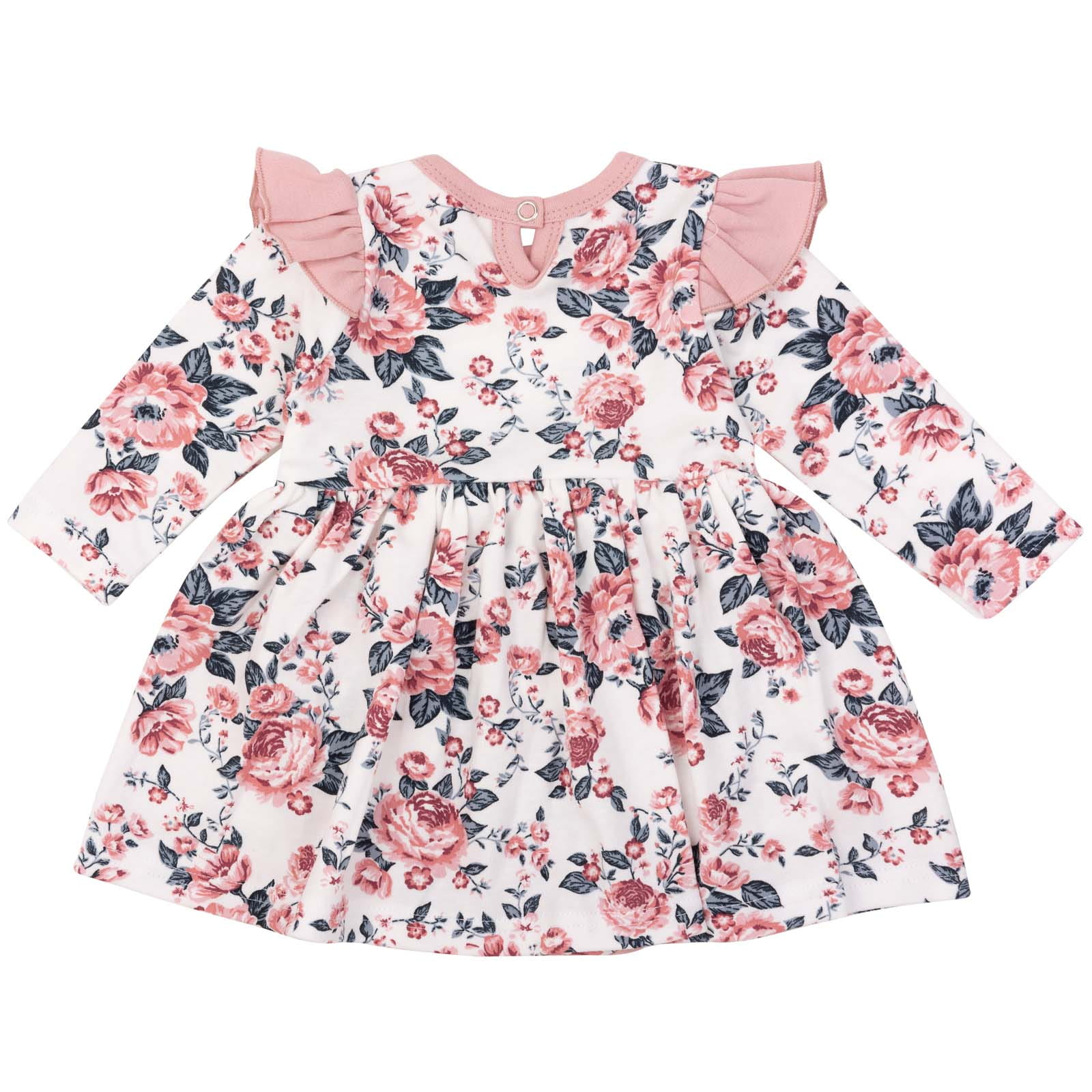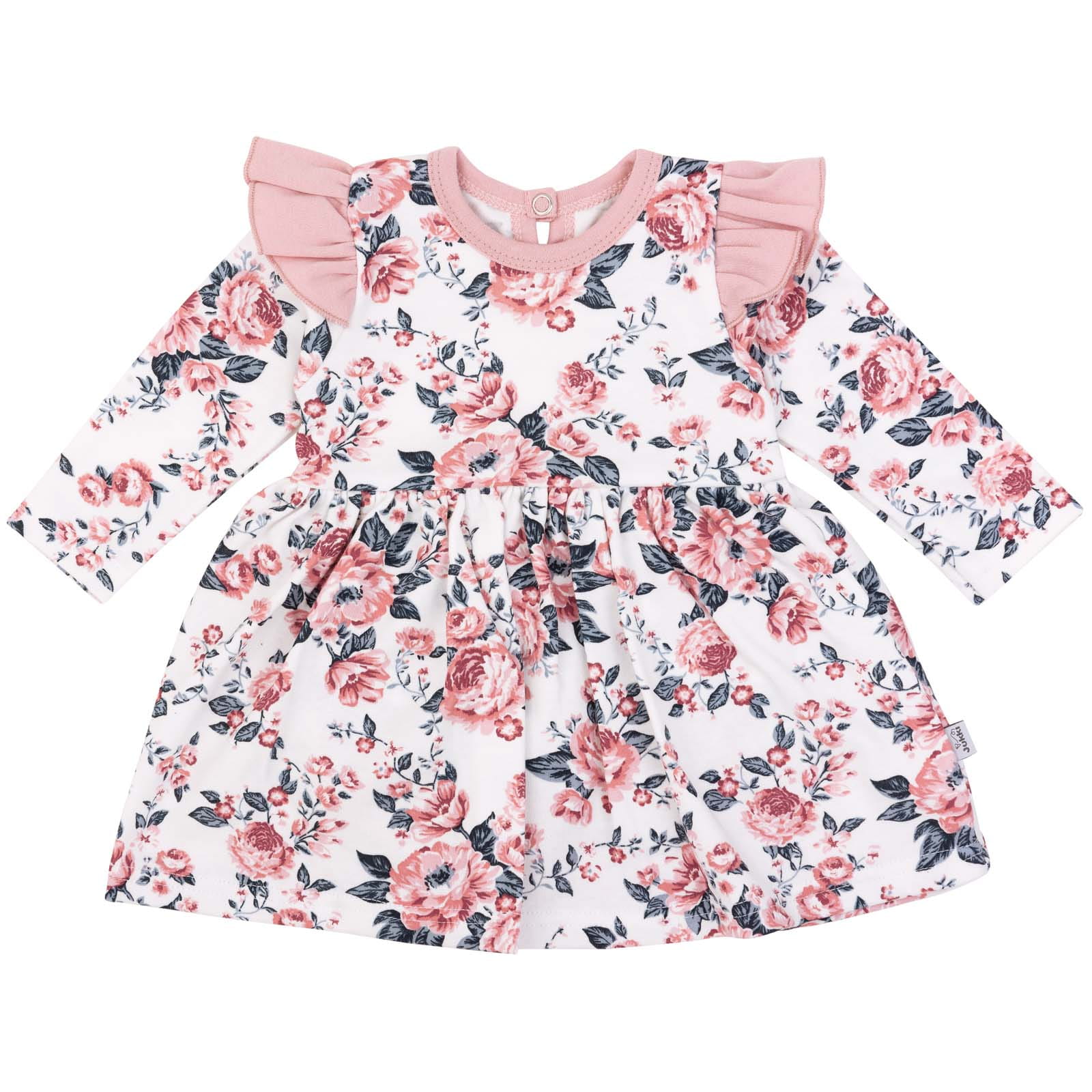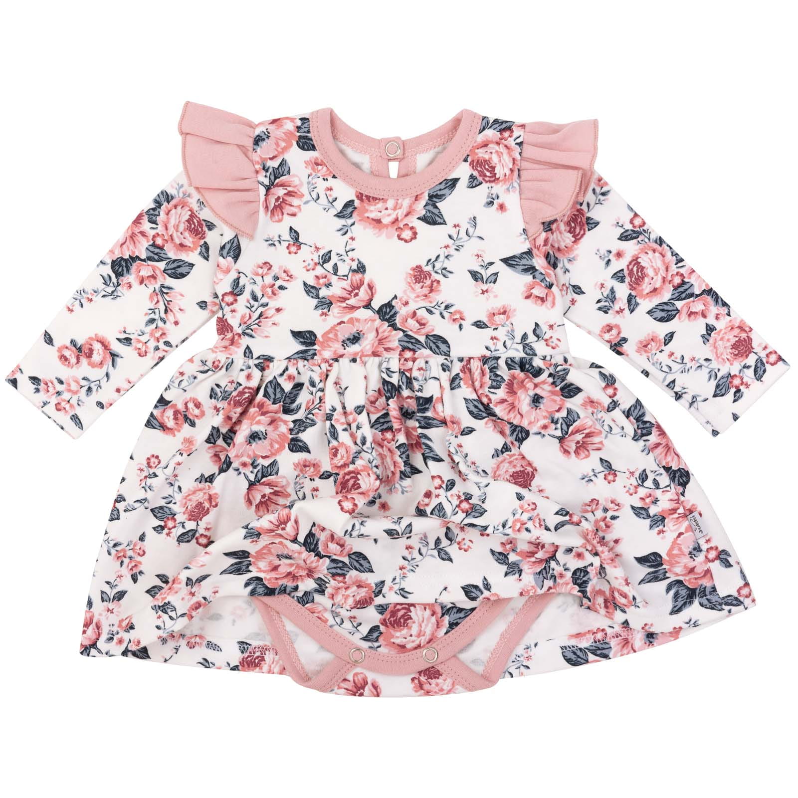 Bawełniana sukienka niemowlęca to połączenie klasycznego, wygodnego body rozpinanego w kroku z doszytą uroczą falbanką.
