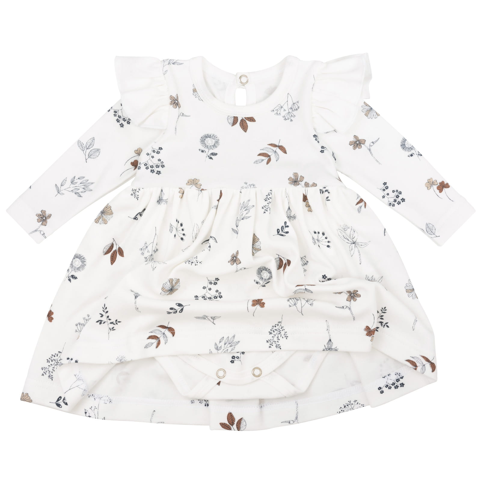 Bawełniana sukienka niemowlęca to połączenie klasycznego, wygodnego body rozpinanego w kroku z doszytą uroczą falbanką.